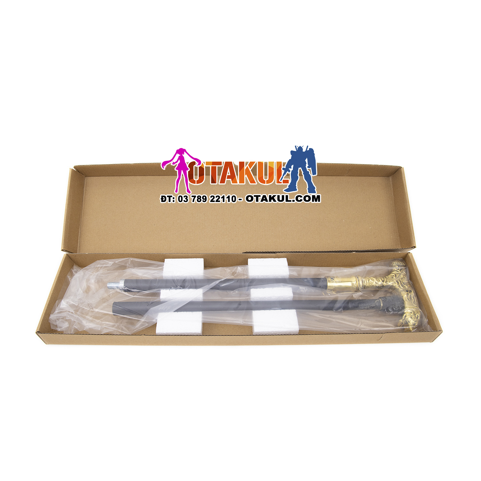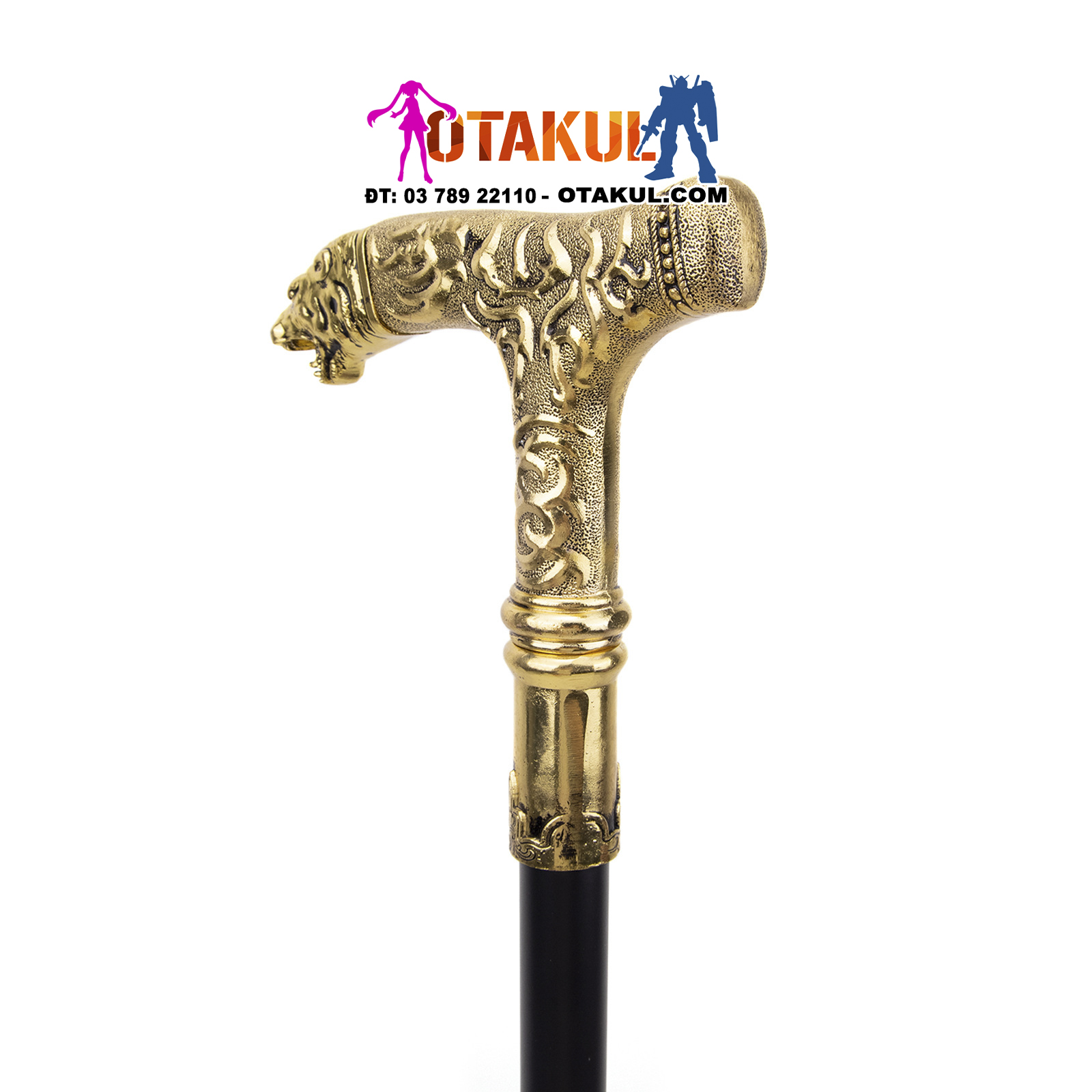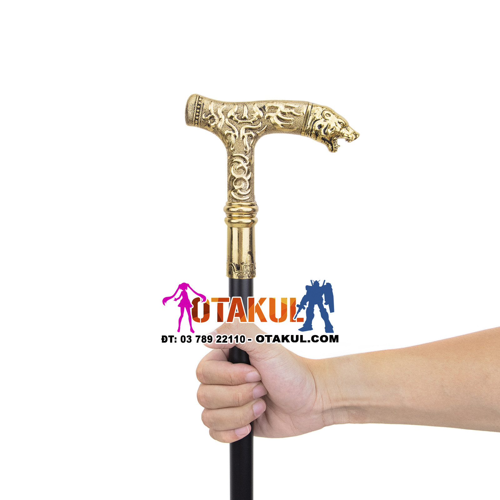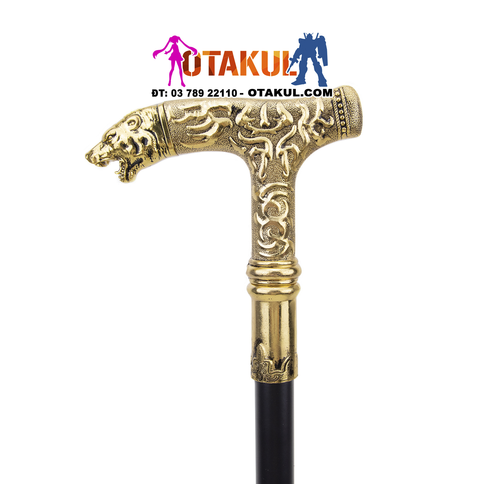 Thông số kỹ thuật: tổng chiều dài 92CM Chất liệu: sắt, nhôm Trang phục: Vỏ bọc sơn mài bóng mờ màu đen mạ hợp kim Nghề thủ công: Đầu gậy có thiết kế dập nổi đẹp mắt Phương pháp cố định thân kiếm là kiểu chèn và vặn, dưới đáy gậy có miếng đệm cao su chống trượt để gia cố và chống mài mòn. Hộp đóng gói Công dụng; trang trí nhà cửa, sưu tầm quà tặng, đạo cụ quay phim và truyền hình, studio chụp ảnh, tập võ