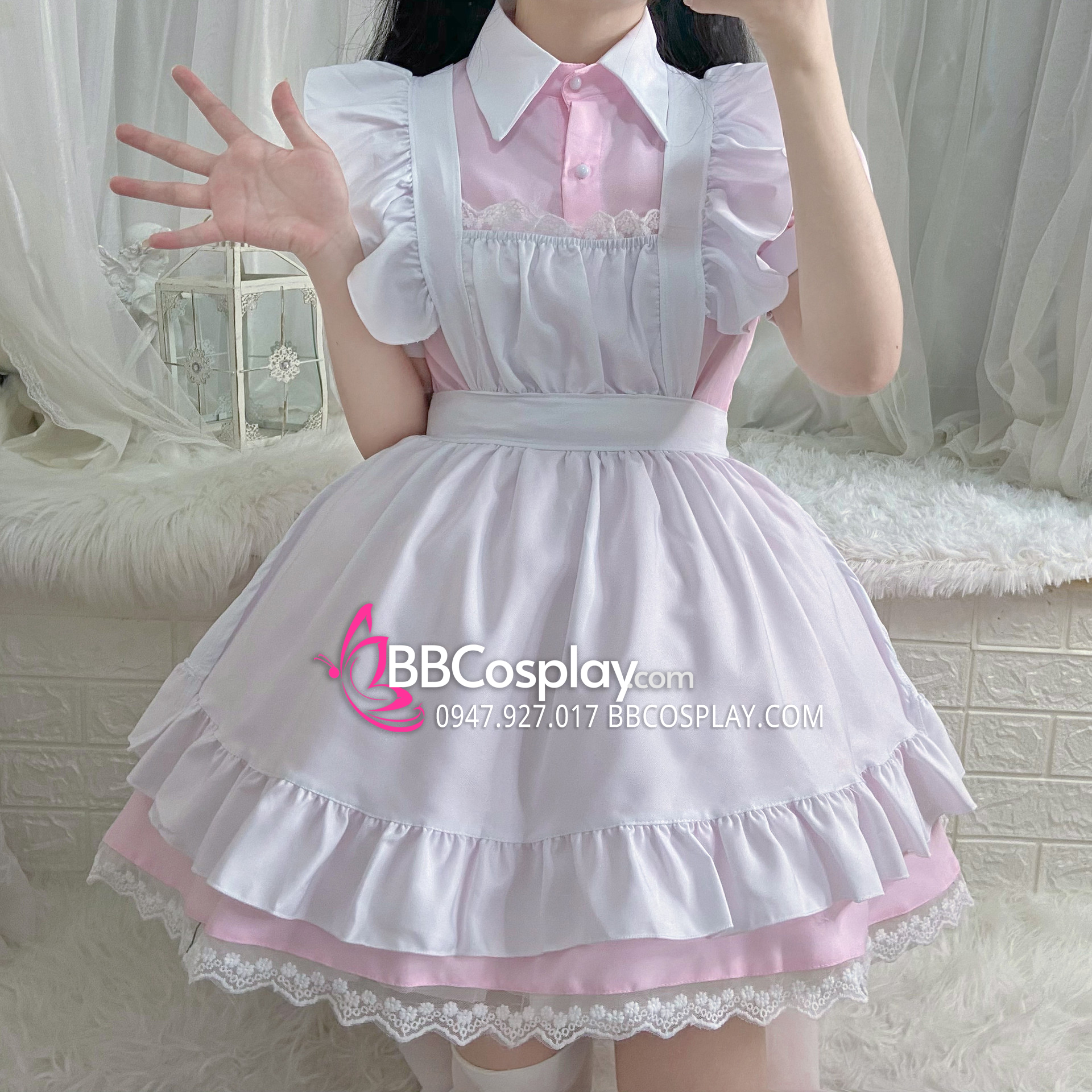 Đồ Nàng Hầu Maid Hồng Tạp Dề Trắng Kèm Nhiều Nơ