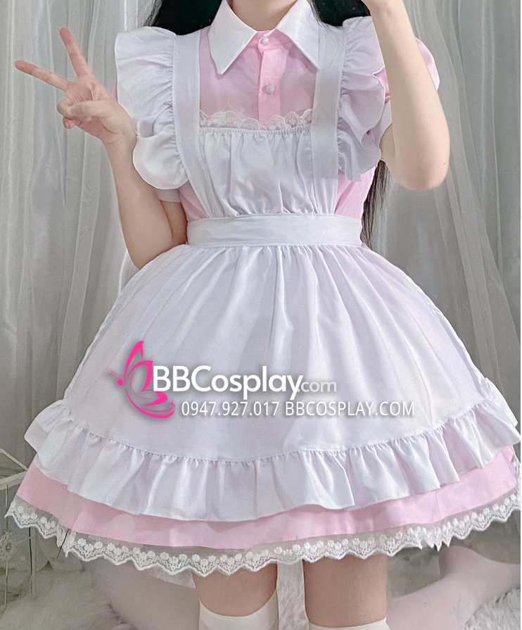 Đồ Nàng Hầu Maid Cổ Sơ Mi - Màu Hồng