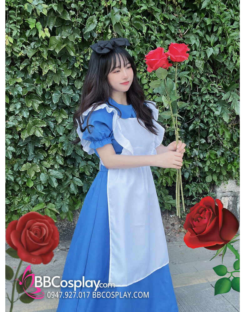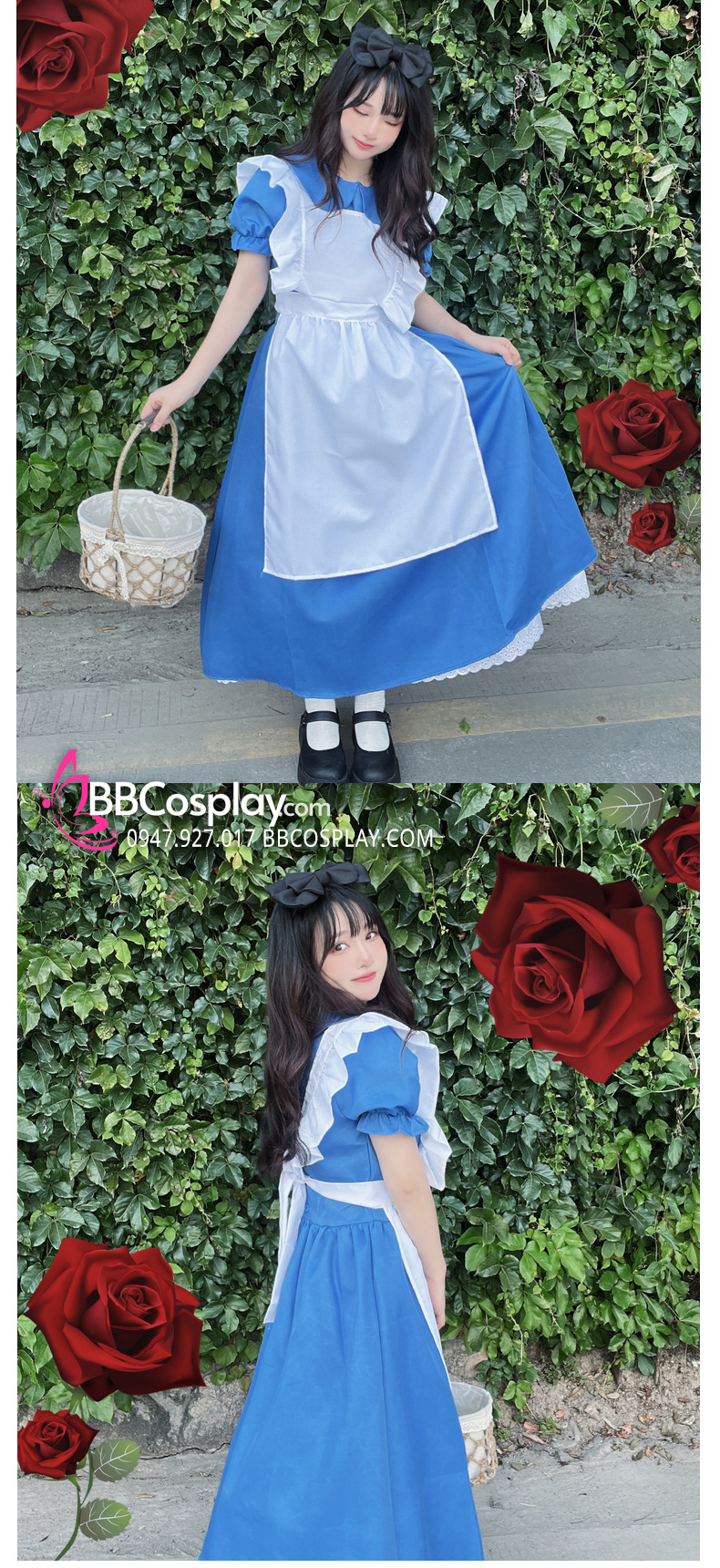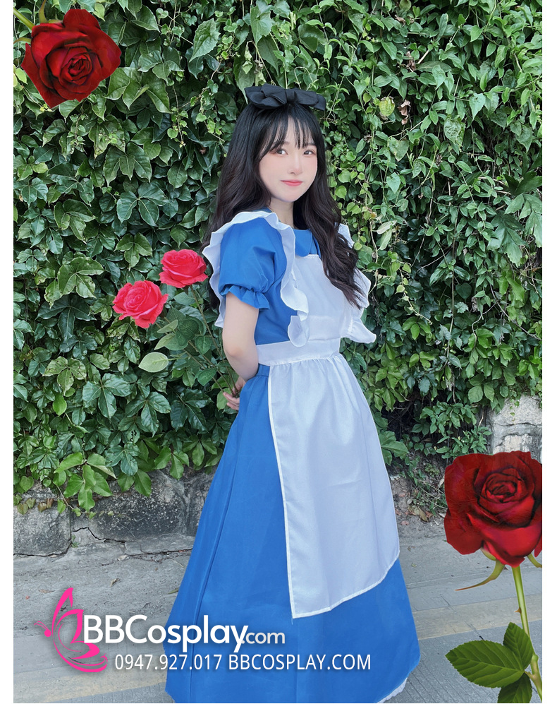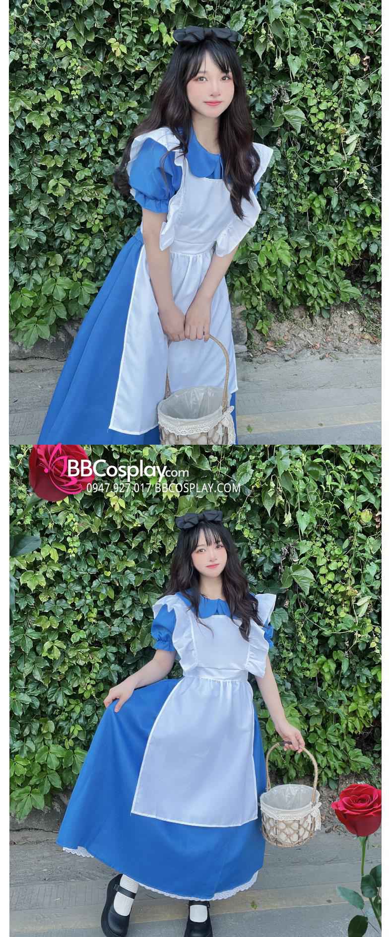 Đồ Nàng Hầu Maid Xanh Dương Tạp Dề Trắng Kèm Nhiều Nơ