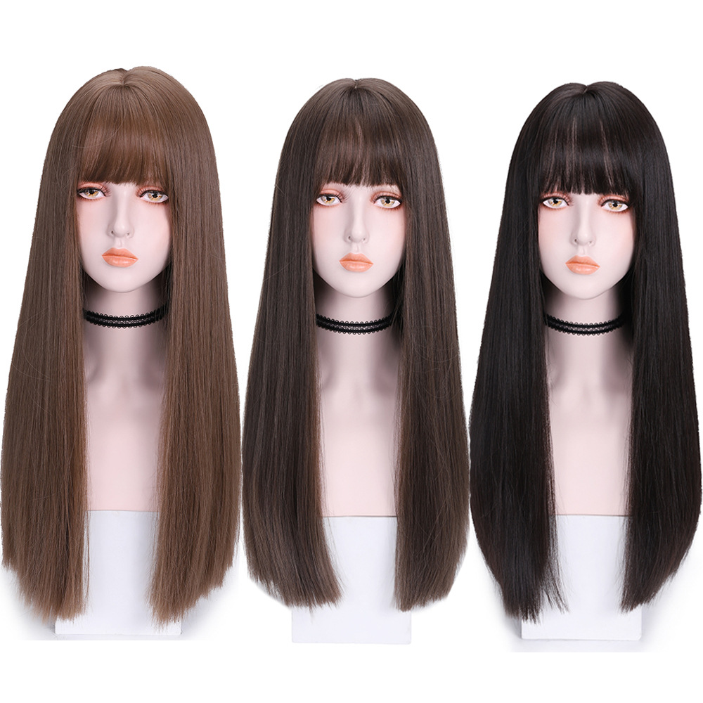 Tóc Giả Nâu Thẳng Mái Ngang 70Cm