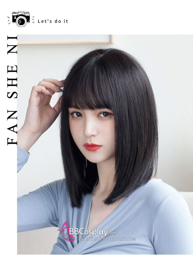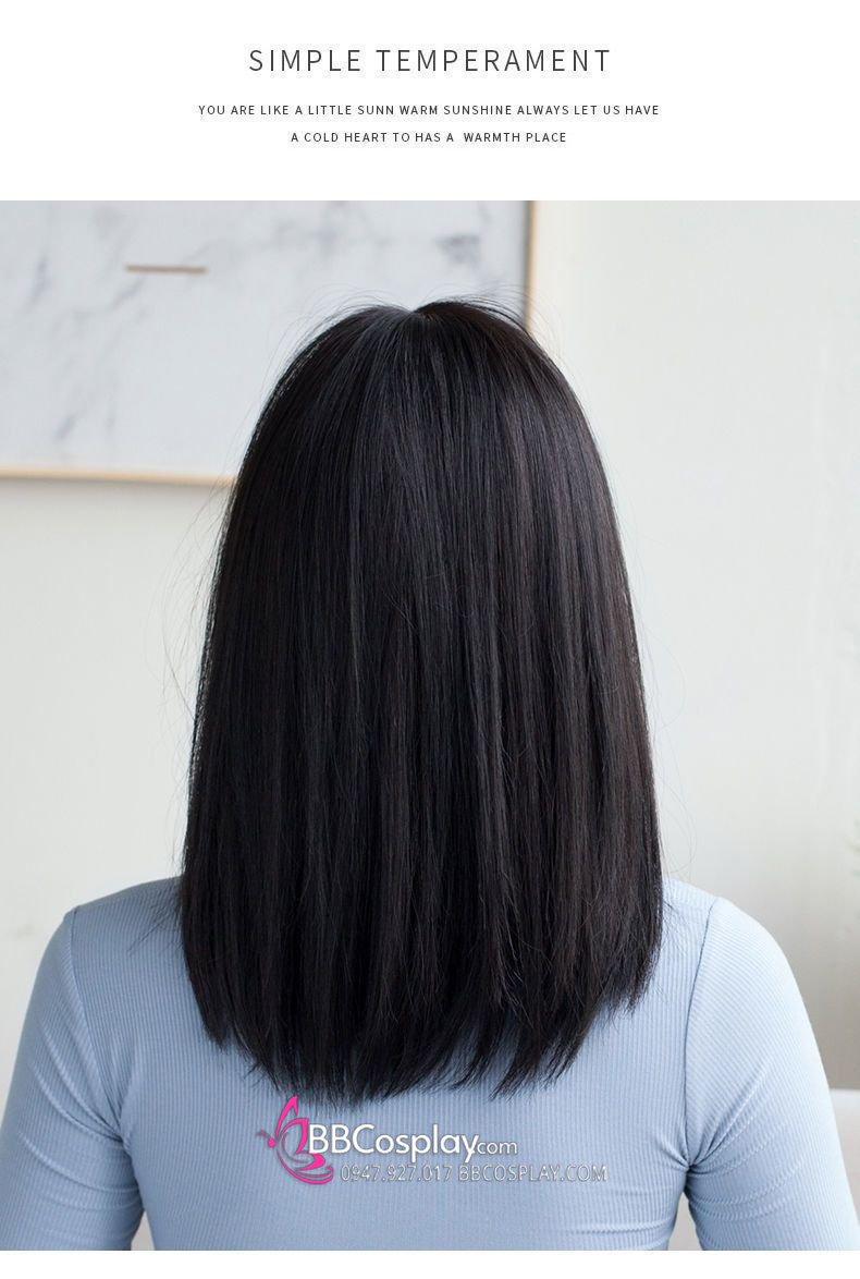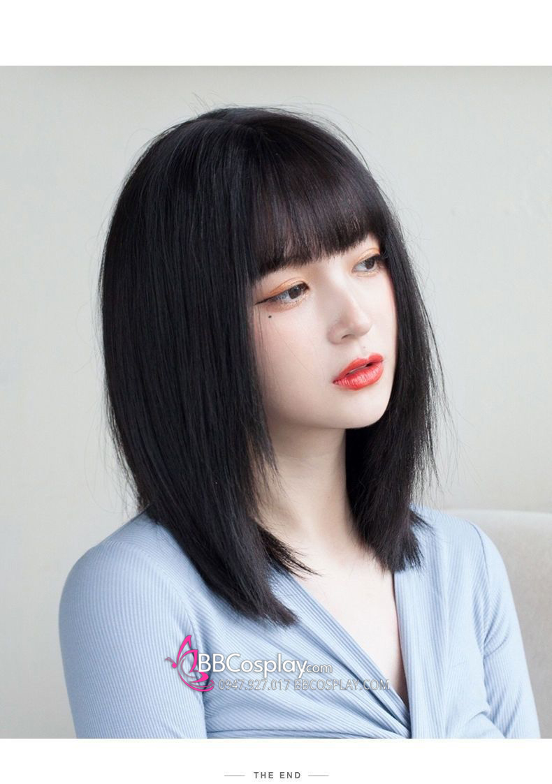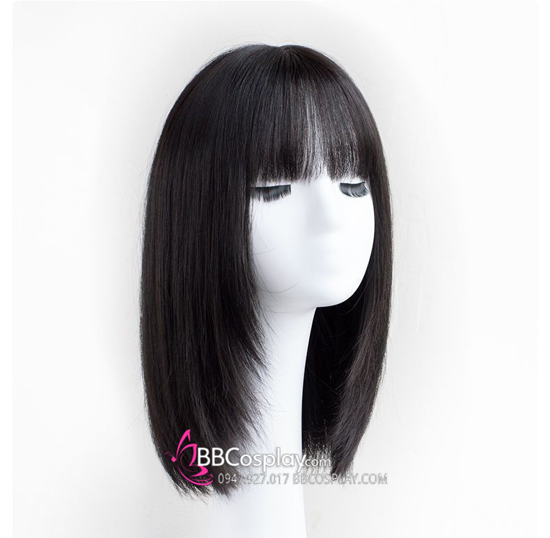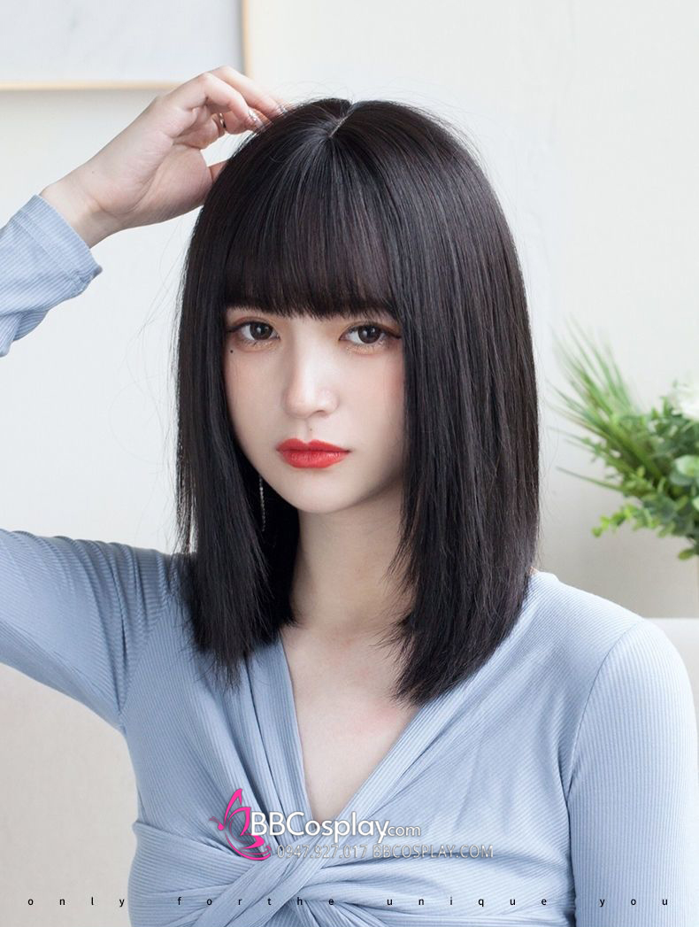 Tóc Giả Đen Cúp Ngang Vai Mái Ngang Xinh Xắn