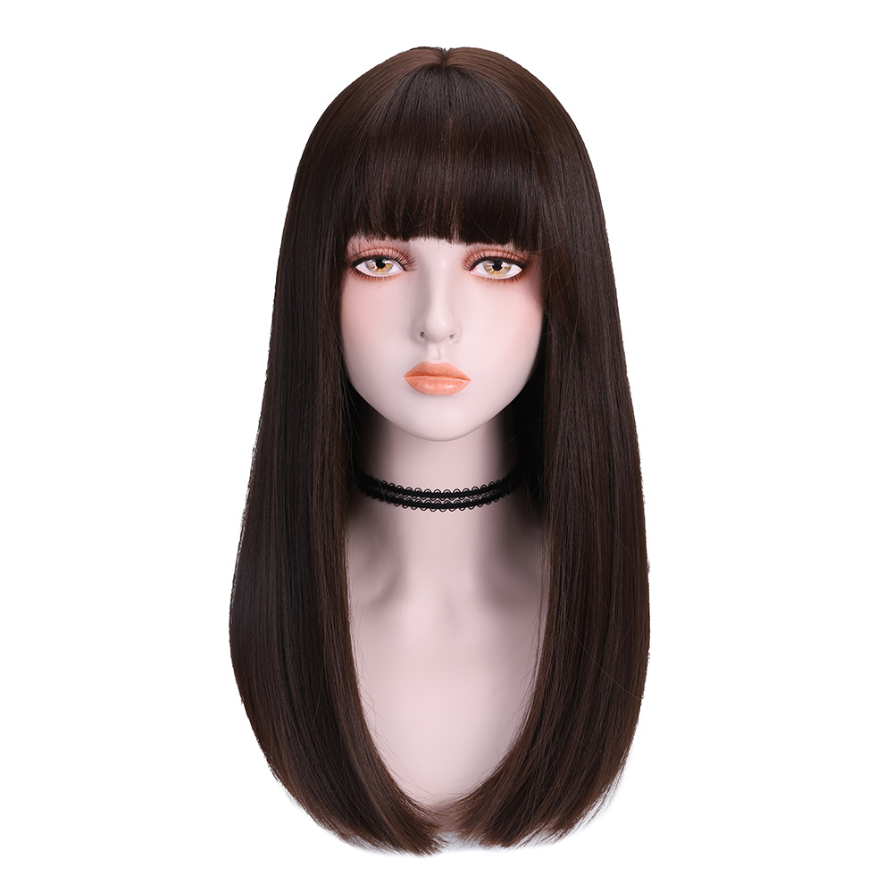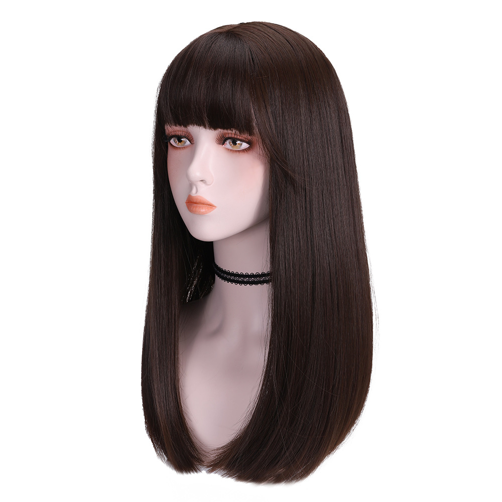 Tóc Giả Nâu Đen Mái Thưa Cúp Nhẹ 65Cm