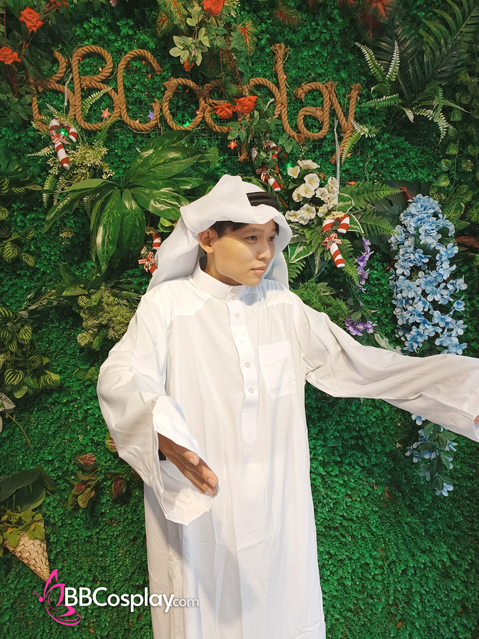 áo trắng dài cổ lãnh tụ + khăn + vòng đội đầu