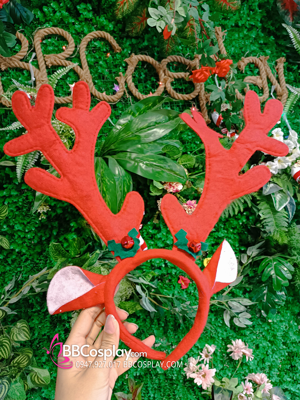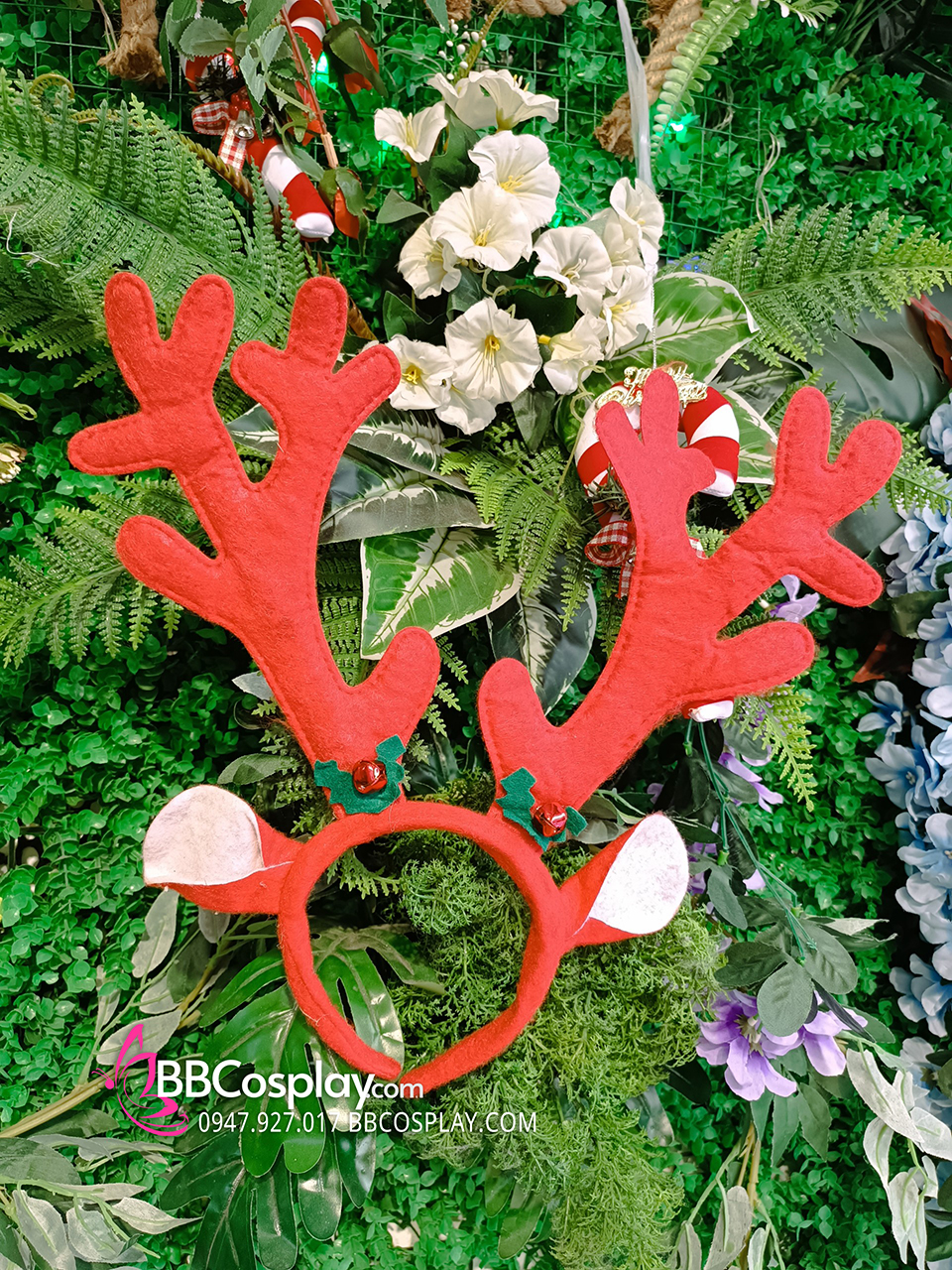 Cài Tóc Giáng Sinh Sừng Nai Màu Đỏ - Mẫu Nỉ