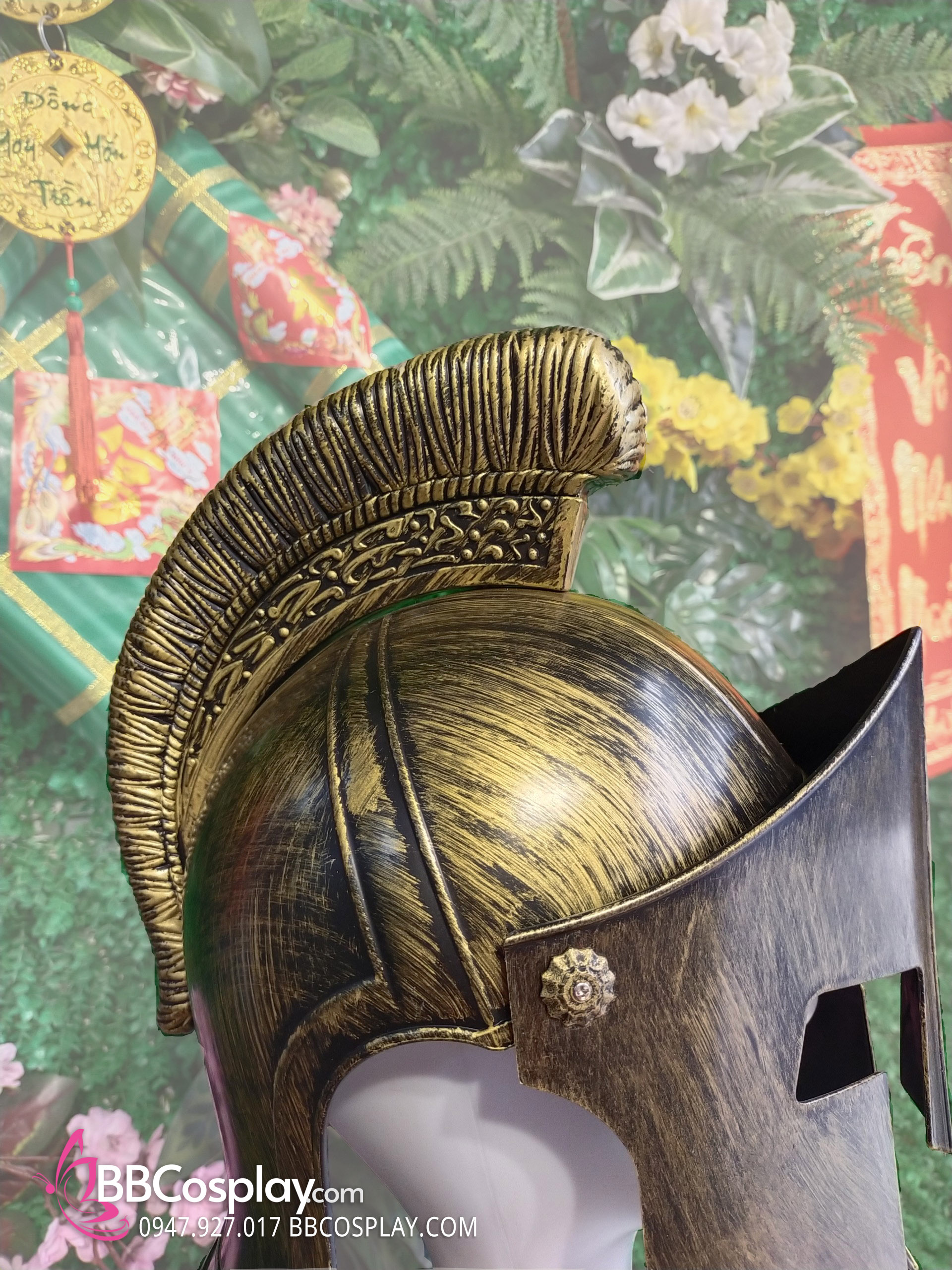 Nón Chiến Binh 300 Có Che Mặt Vàng Đồng