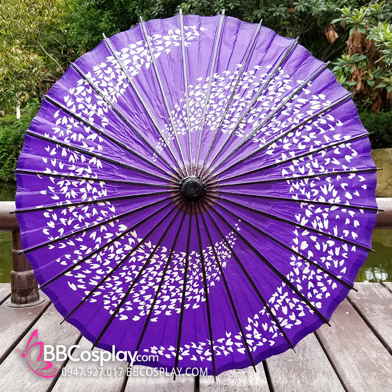 Dù Nghệ Thuật Wagasa Nhật Bản Tím 2 Xoáy Cánh Hoa