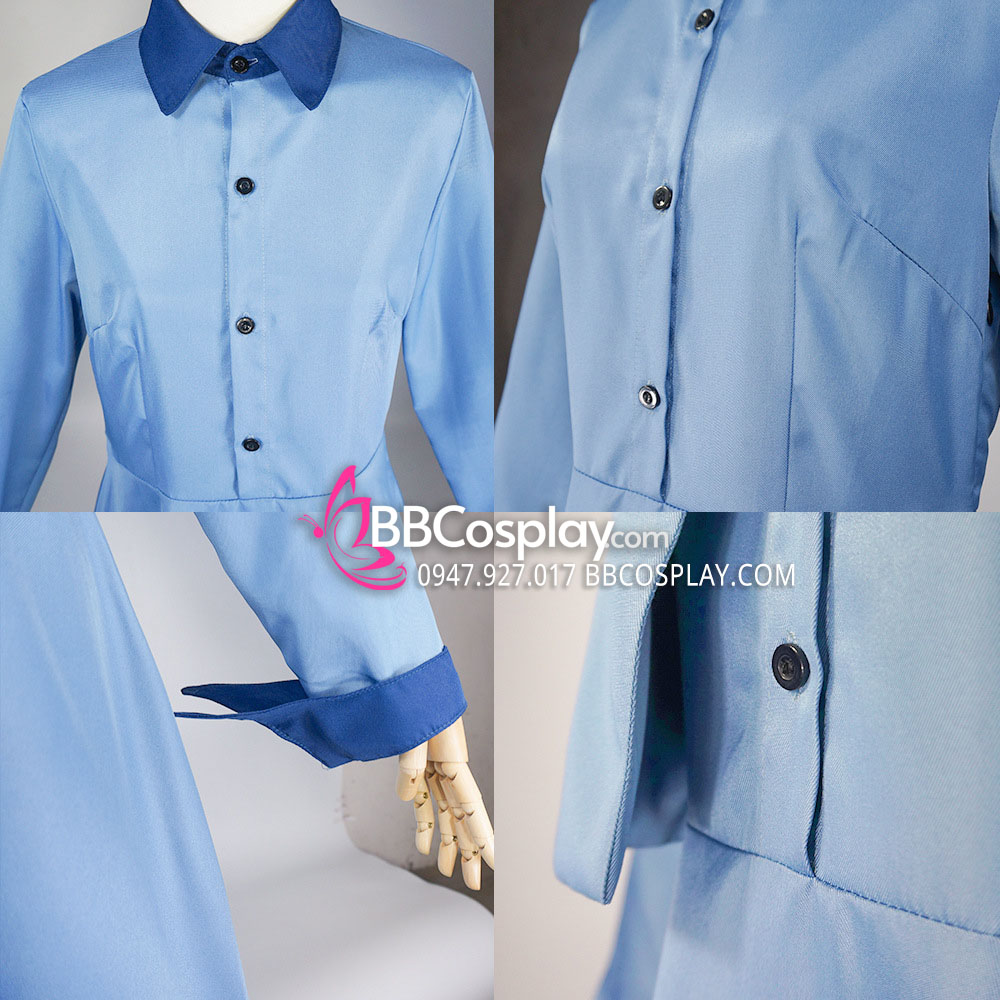 Đồ Nàng Hầu Maid Xanh Dương Tạp Dề Trắng Kèm Nhiều Nơ