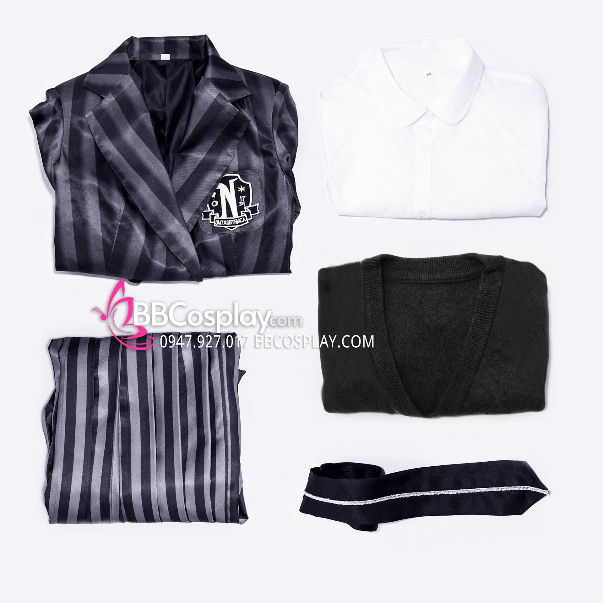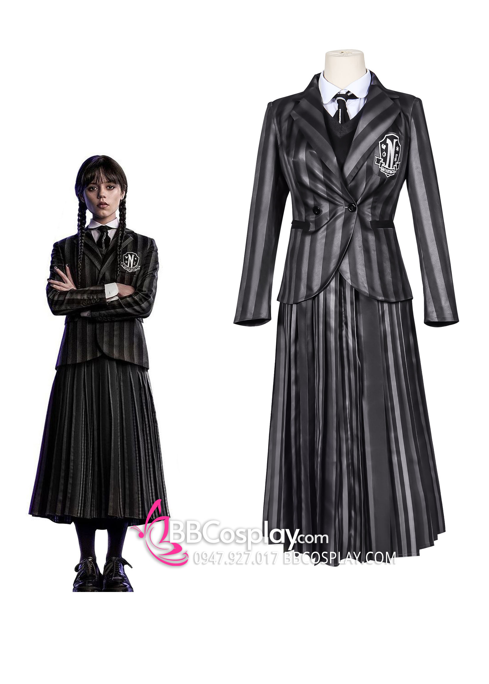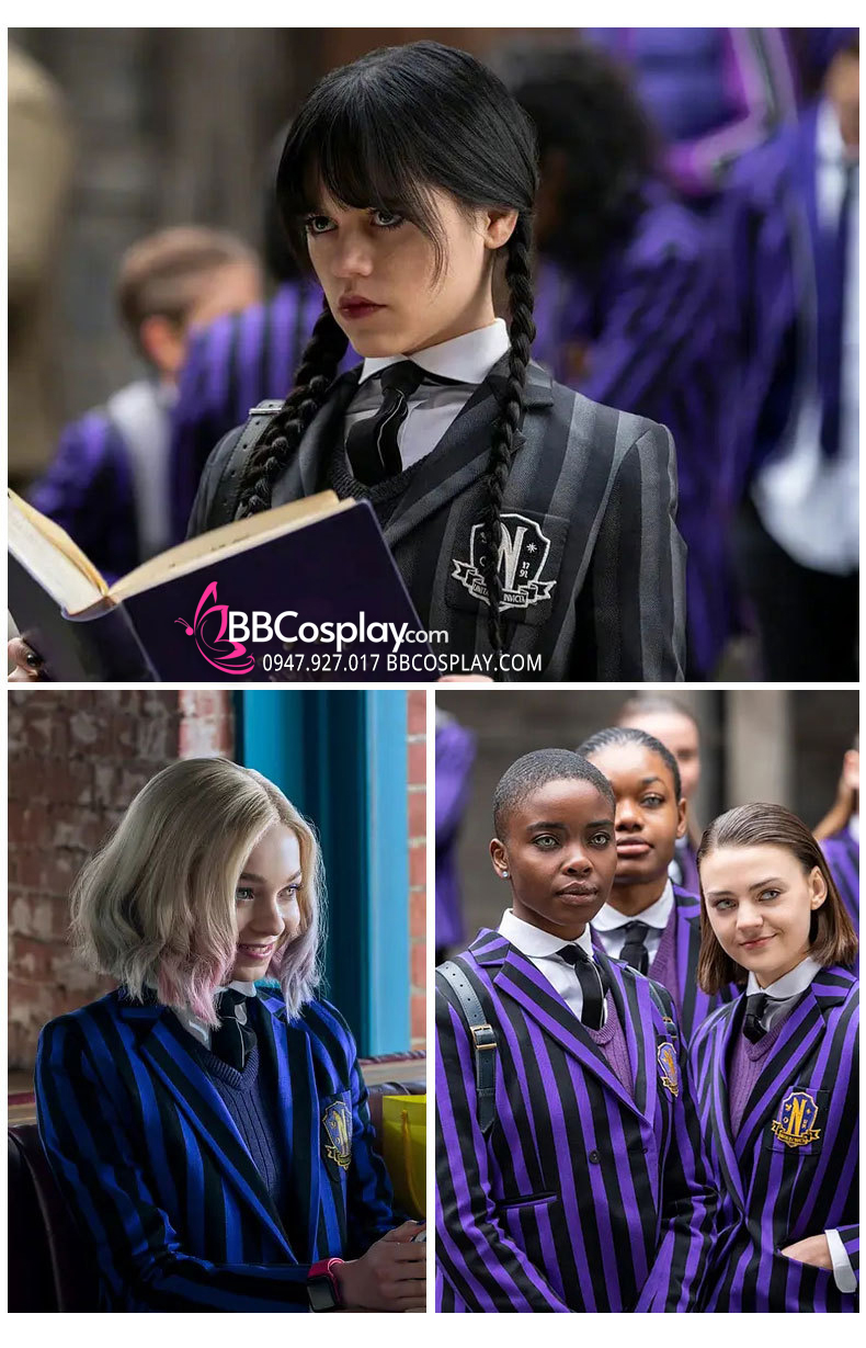 Đồ Wednesday - Đồng Phục Nữ Sinh Vest Đen Sọc Váy Sọc- Wednesday 2022