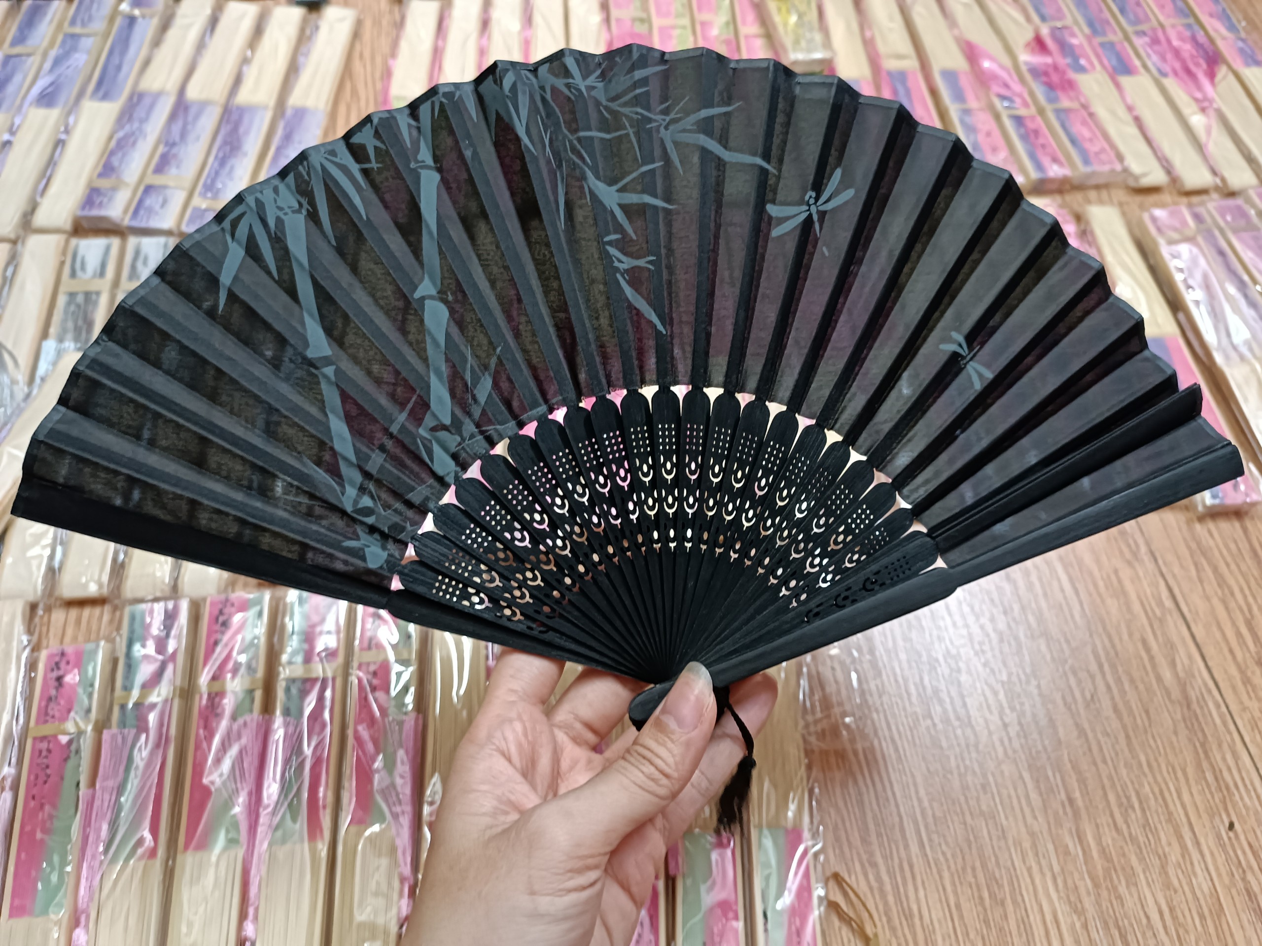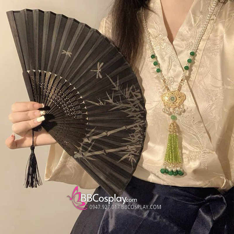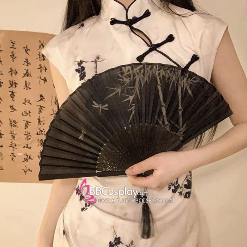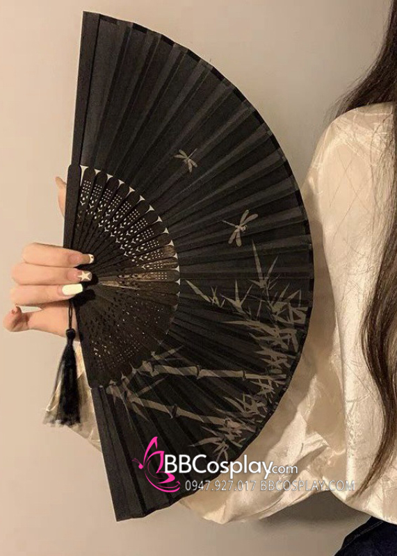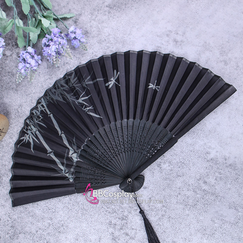 Quạt Xếp Nền Đen Cây Trúc