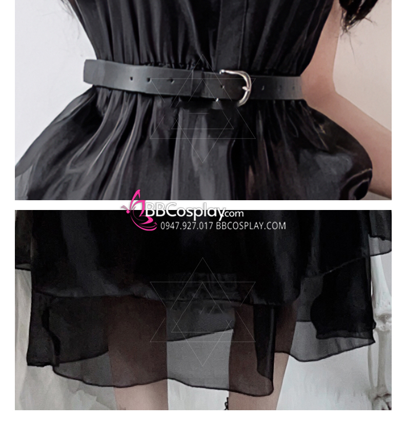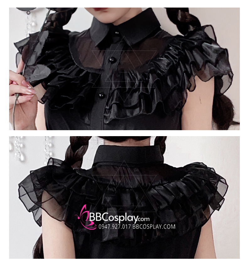 Trang Phục Nàng Hầu Nhật Đen Tạp Dề Trắng Cổ Áo Lá Sen