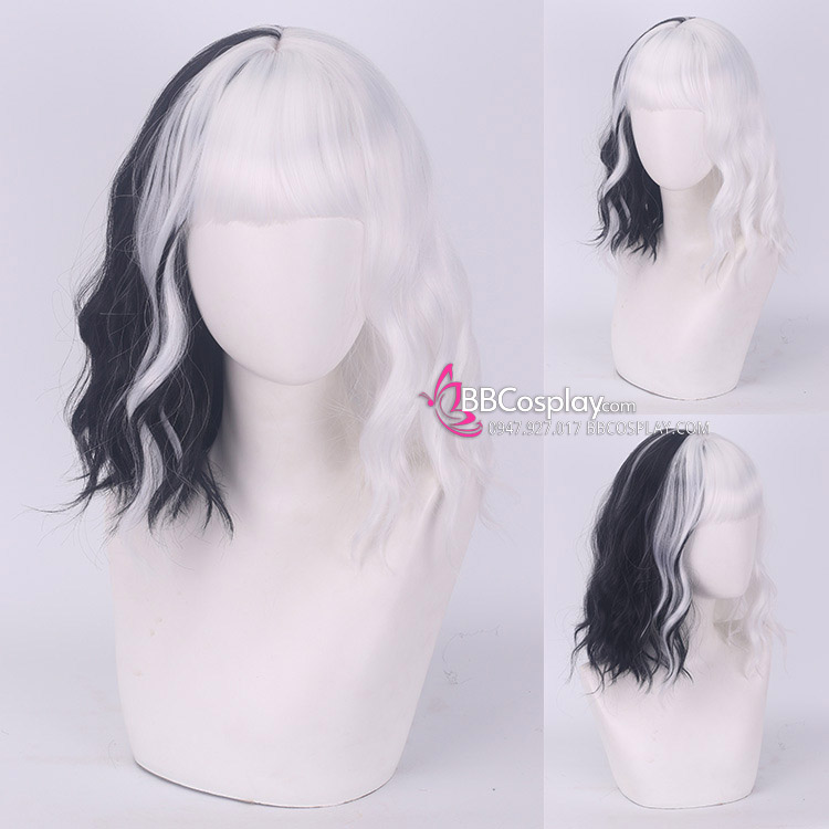 Tóc Giả Dài Xoăn Nữa Trắng Đen