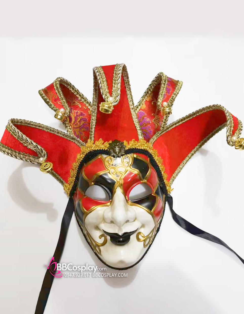 Mặt Nạ Hề Lễ Hội Venetian Đỏ Đen