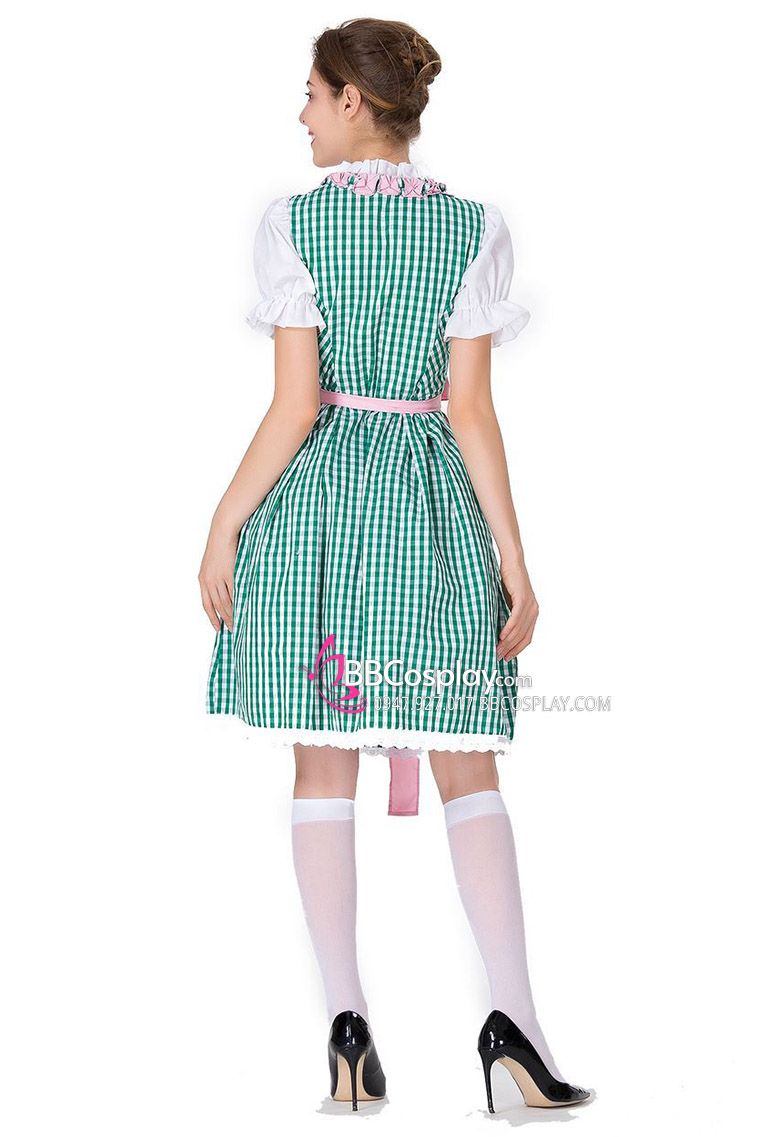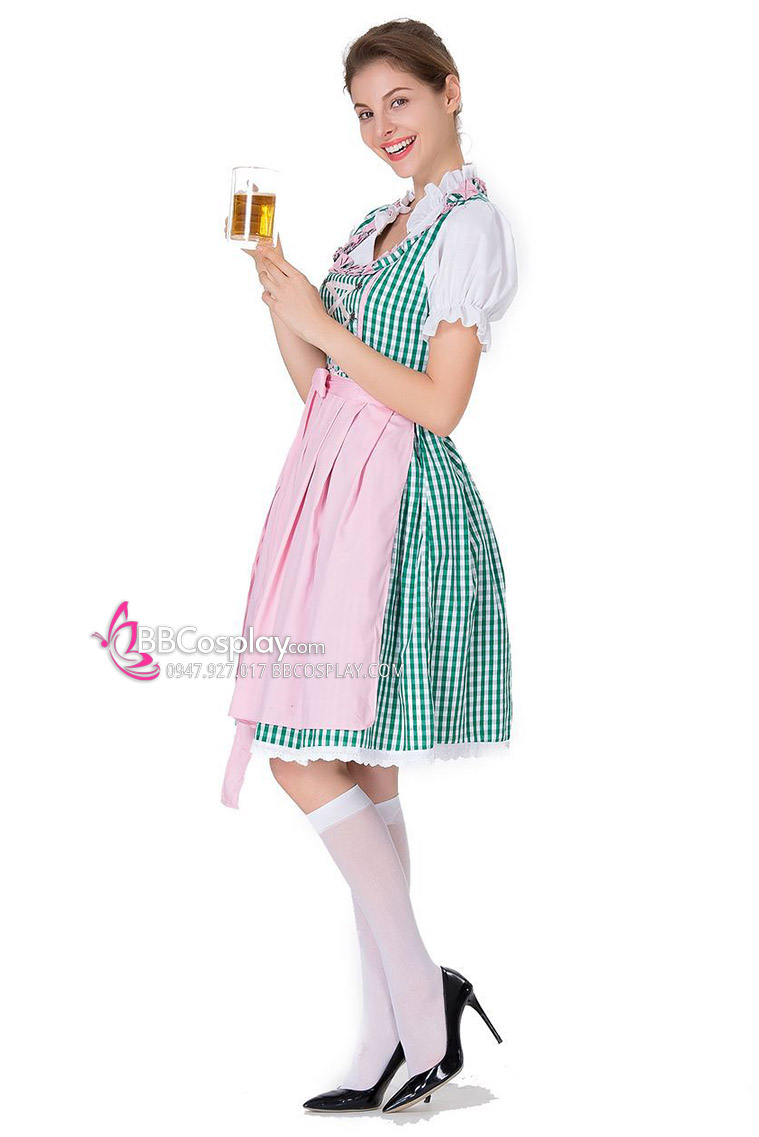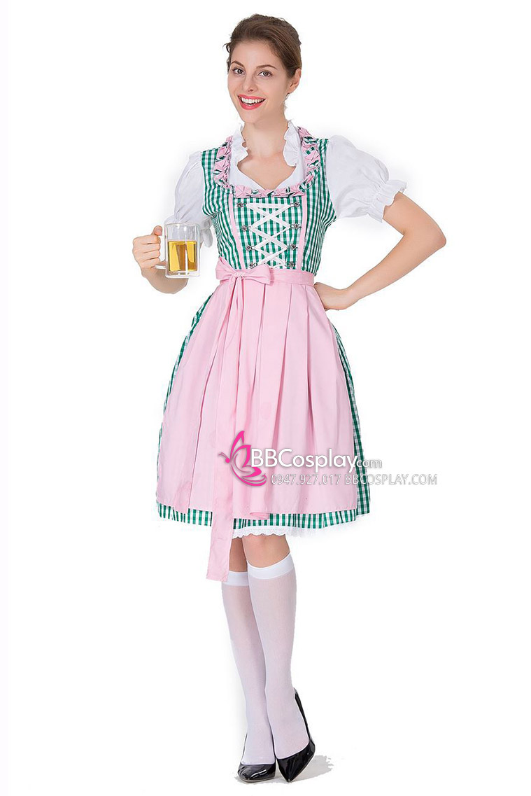 Đầm Lễ Hội Bia Đức Đầm Xanh Tạp Dề Hồng