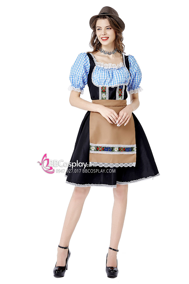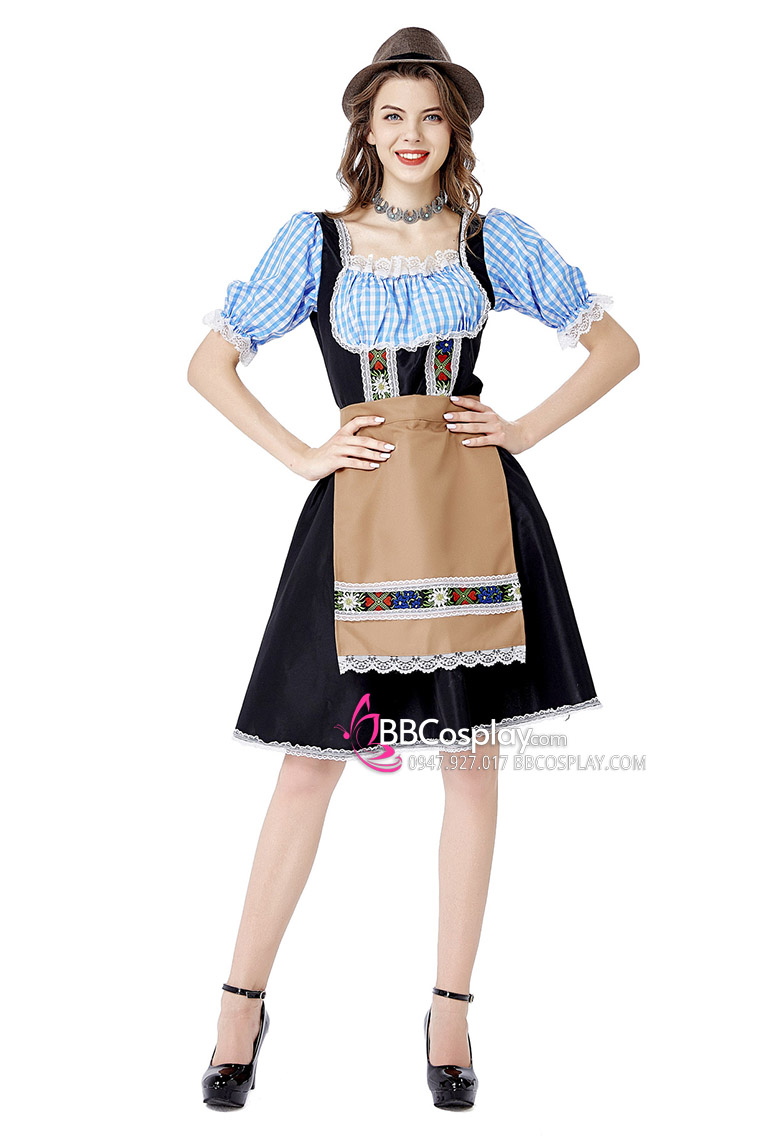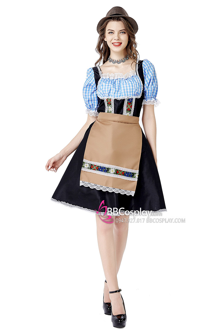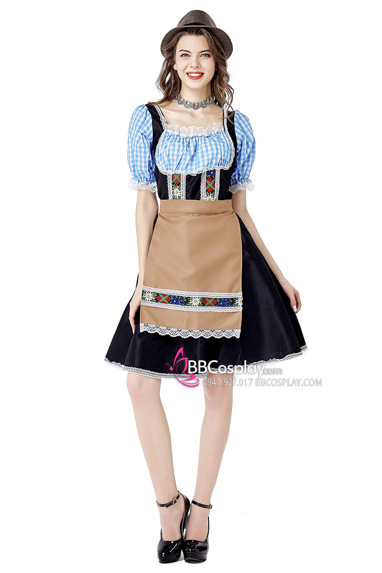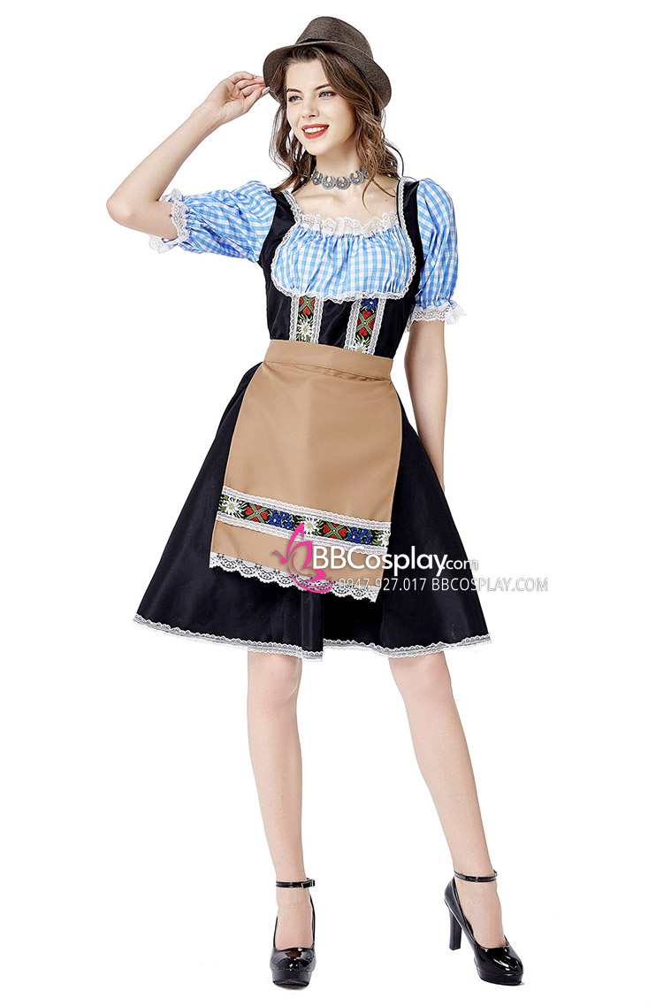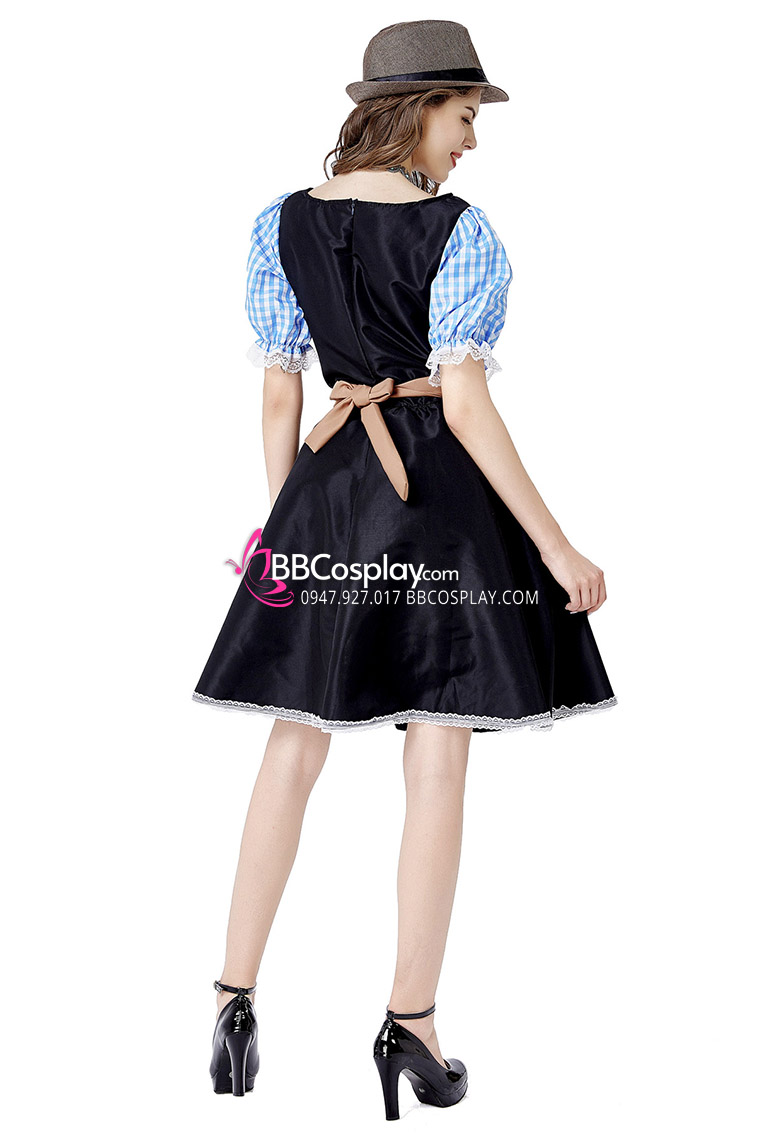 Trang Phục Nàng Hầu Cổ Lá Sen Kèm Tạp Dề Caro - Màu Đen