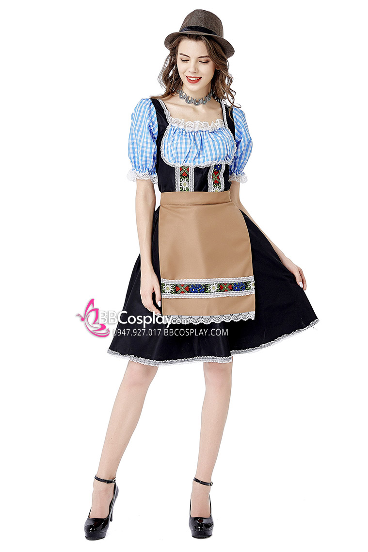 Đồ Nàng Hầu Maid Xanh Dương Tạp Dề Trắng Kèm Nhiều Nơ