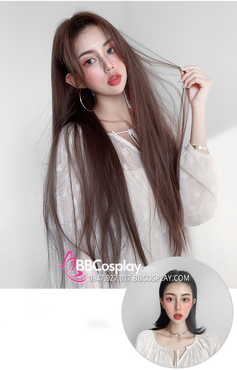 DH ODTK 314604 Tóc Giả Nâu Hạt Dẻ 2 Mái Dài 80Cm 15872