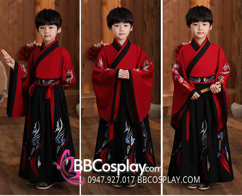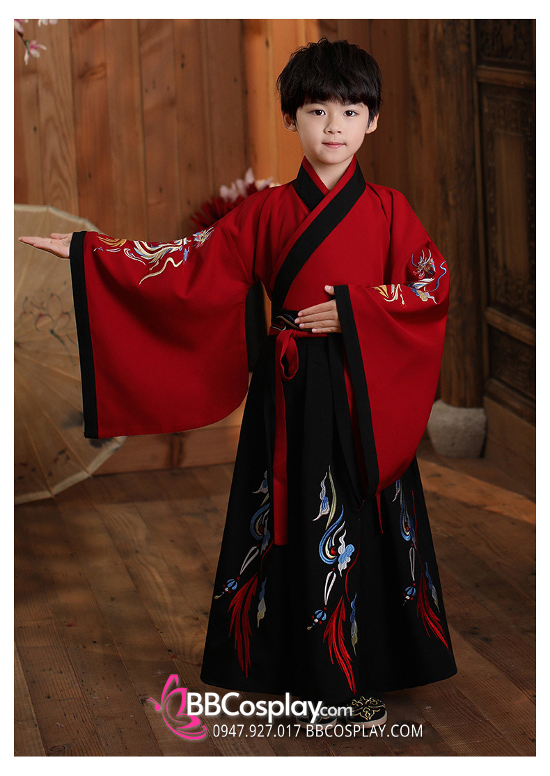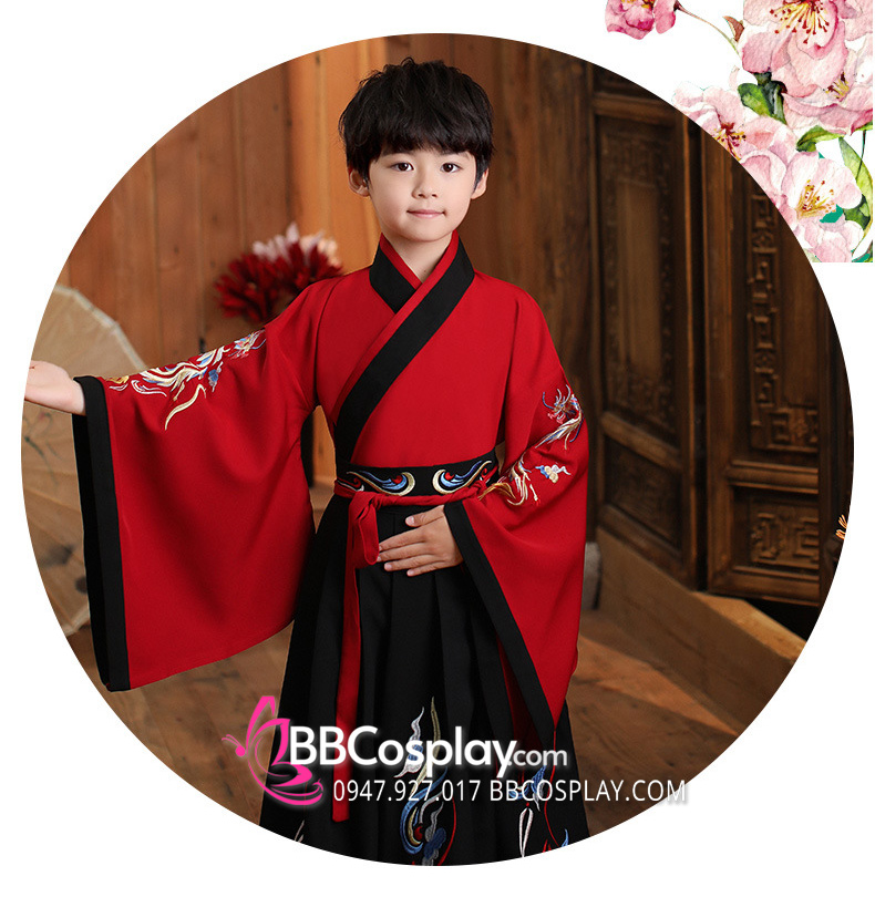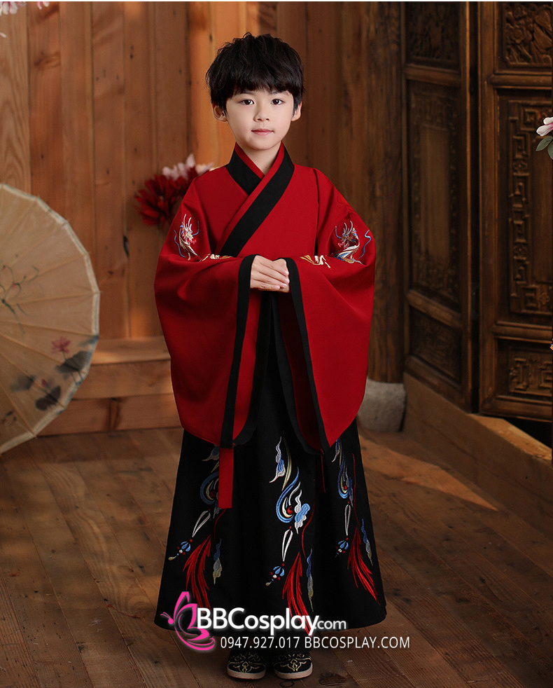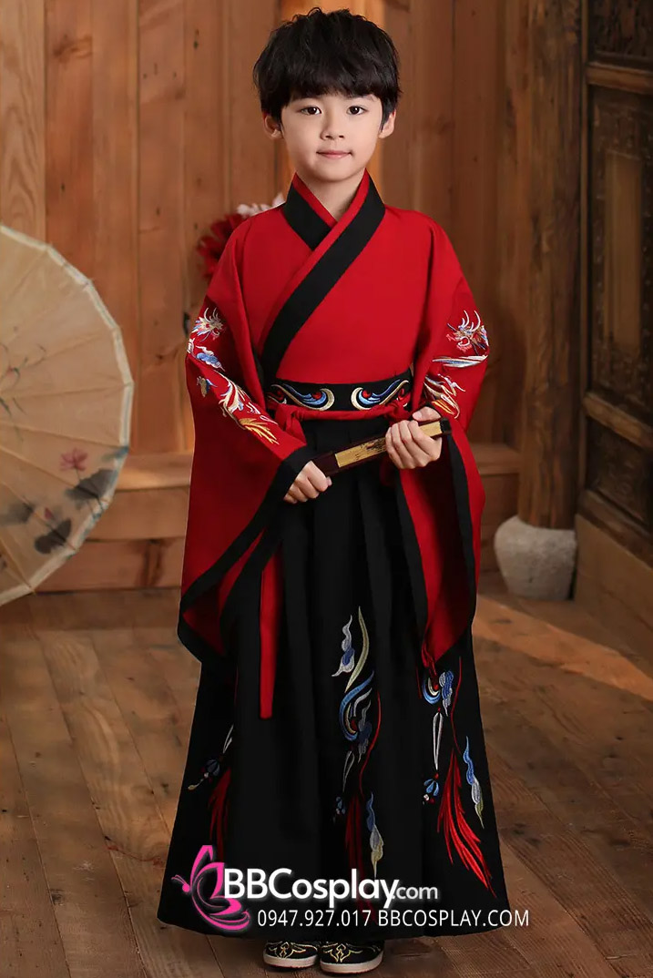 Cổ Trang Thái Tử Bé Trai Áo Đỏ Váy Đen
