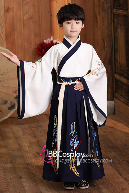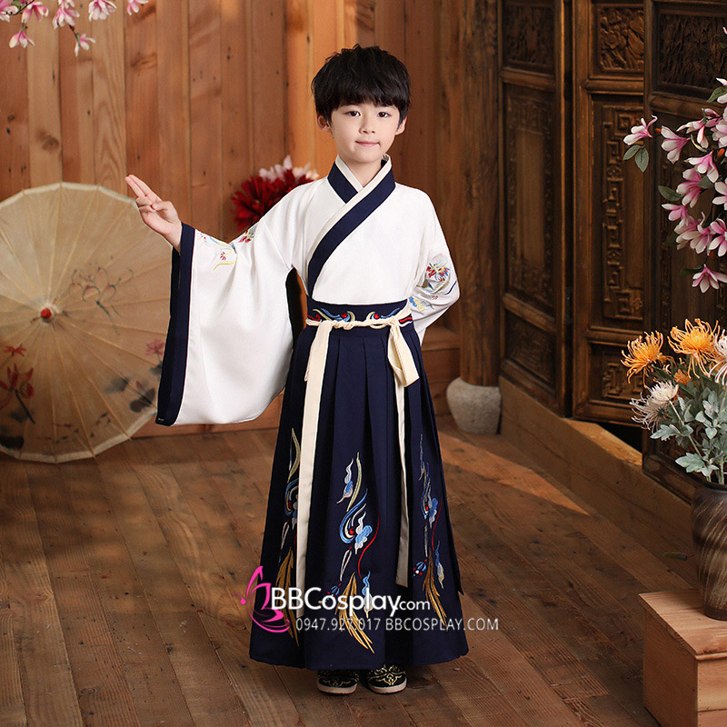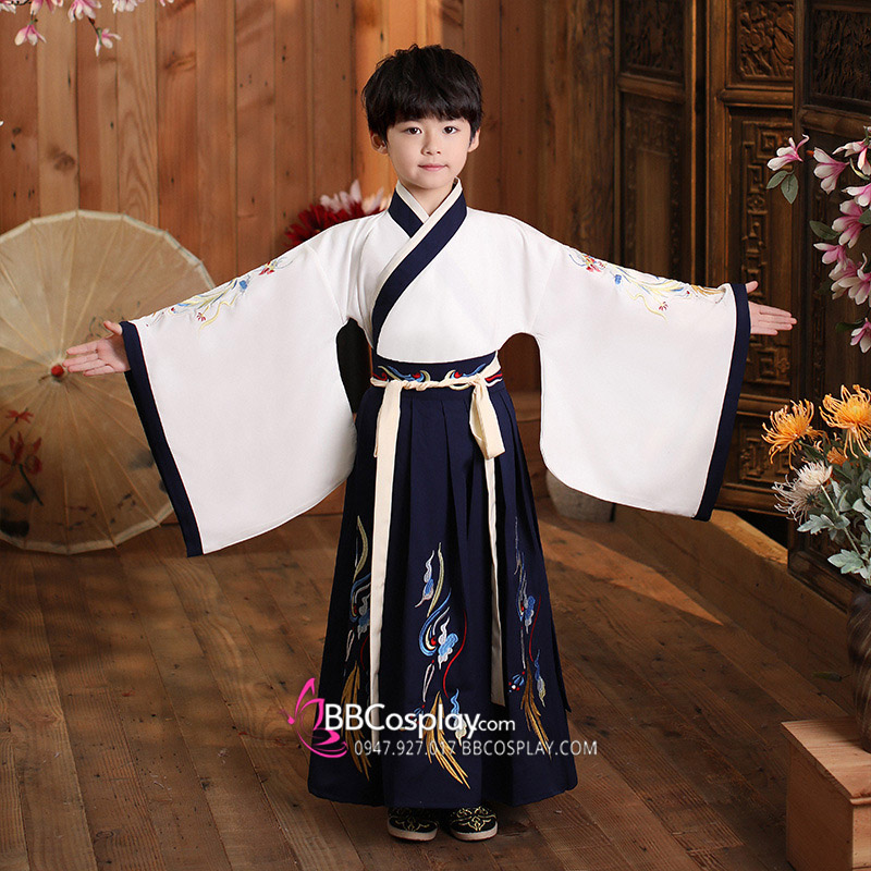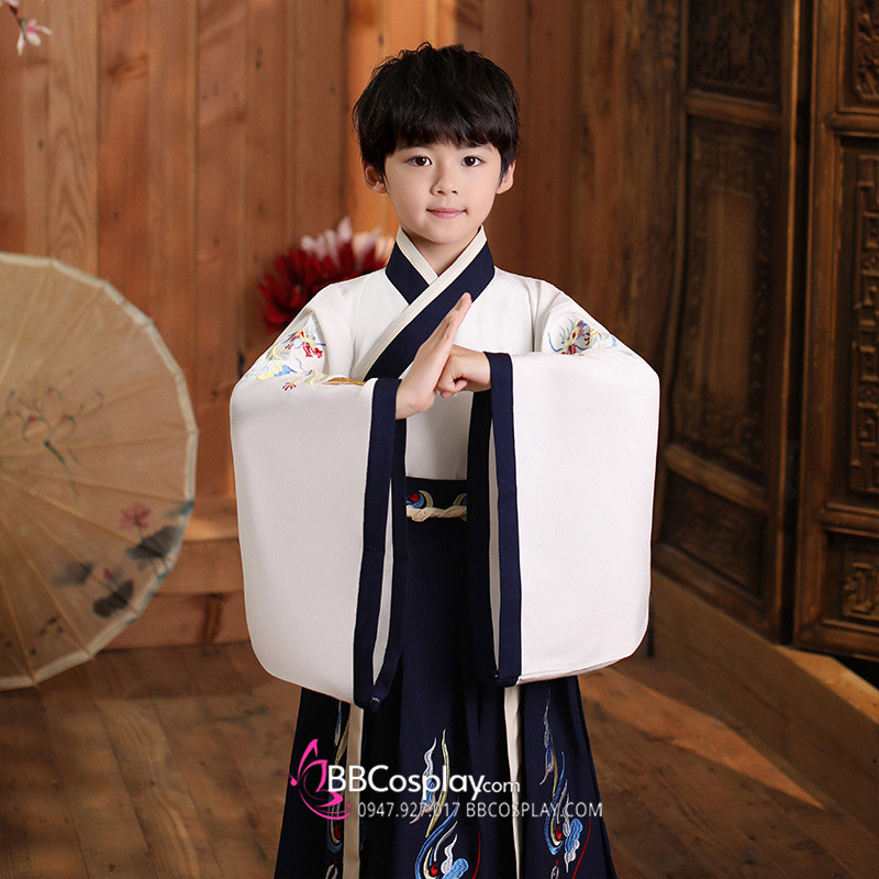 Cổ Trang Thái Tử Bé Trai Áo Trắng Váy Đen