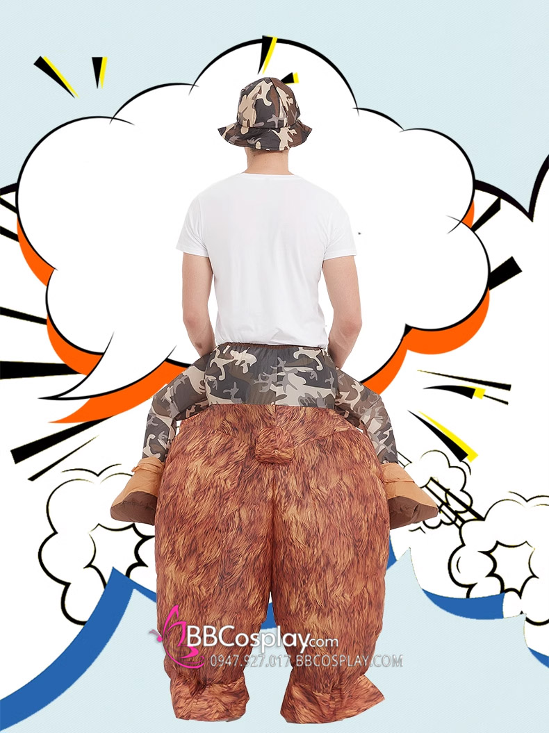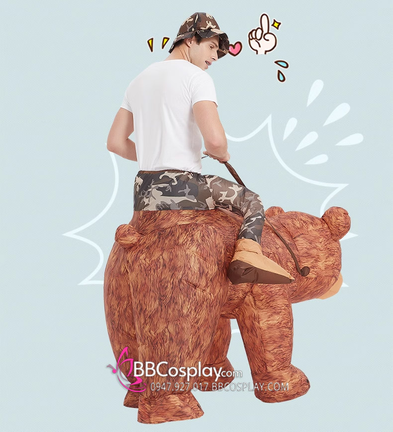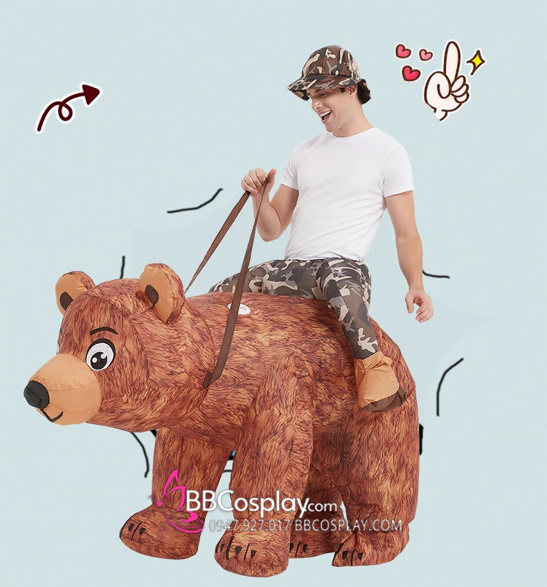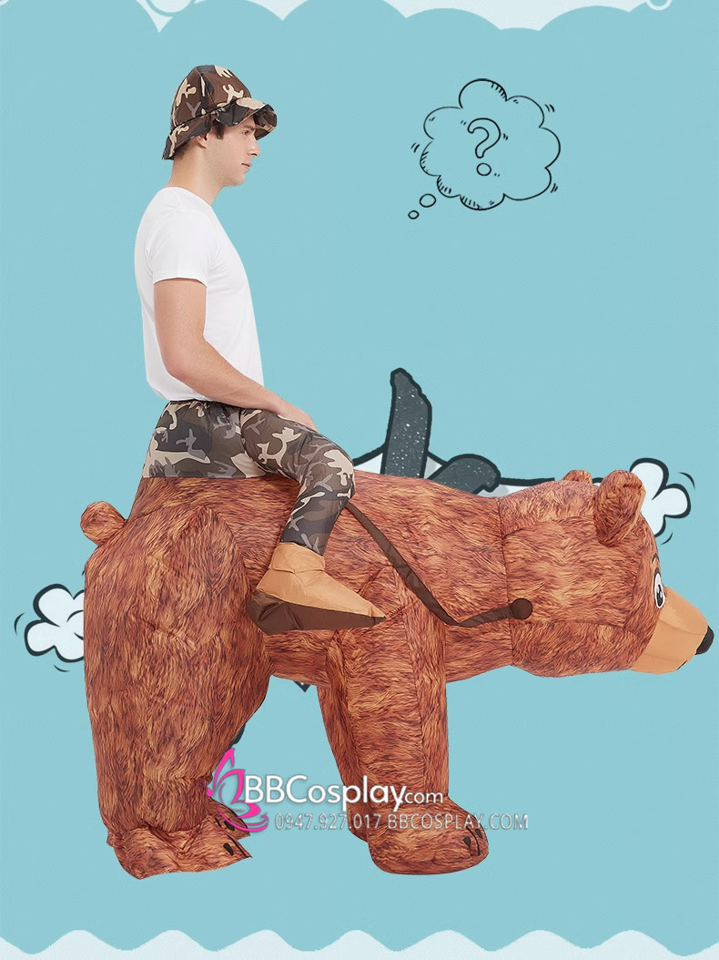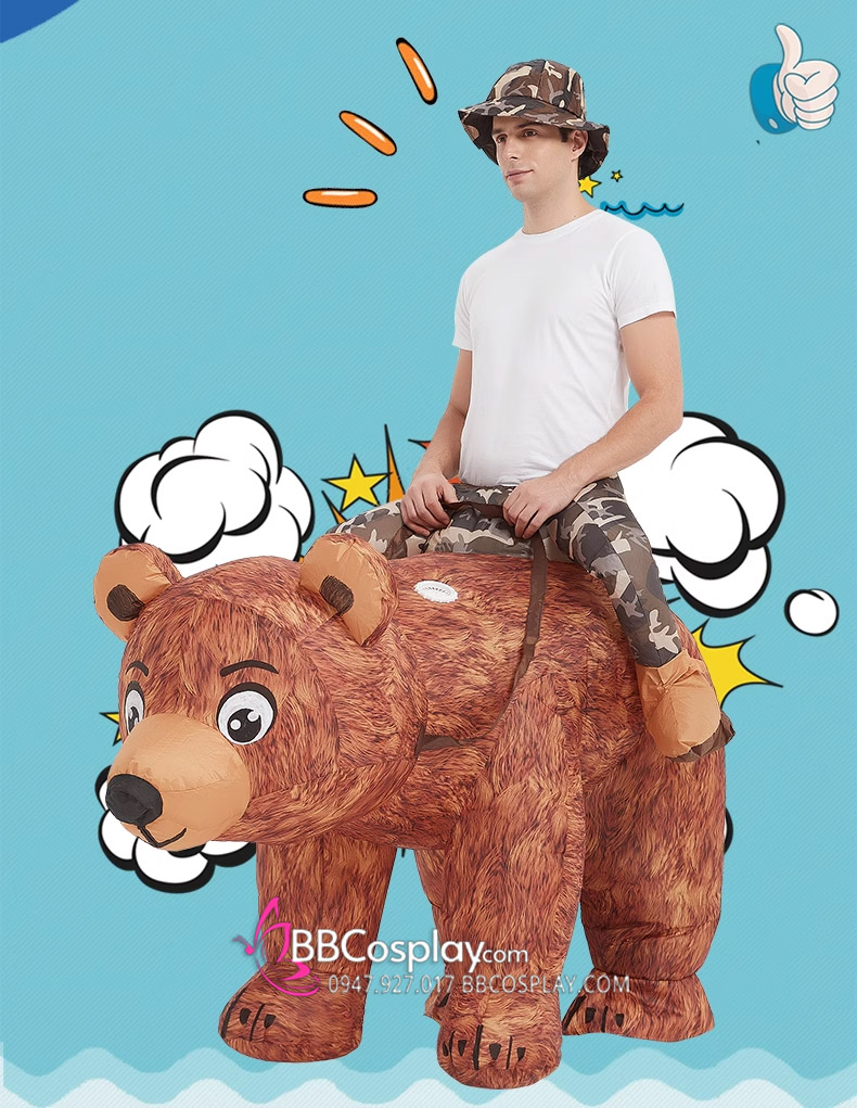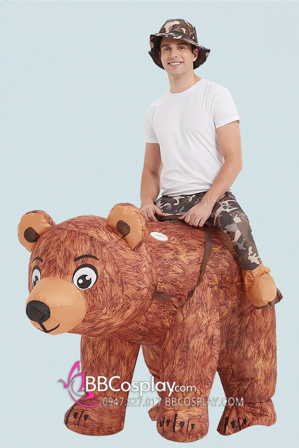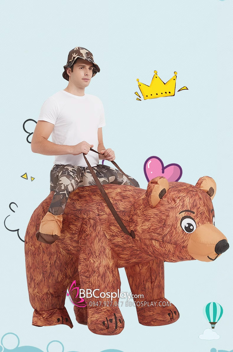 Mascot Người Cưỡi Gấu Nâu Bơm Hơi