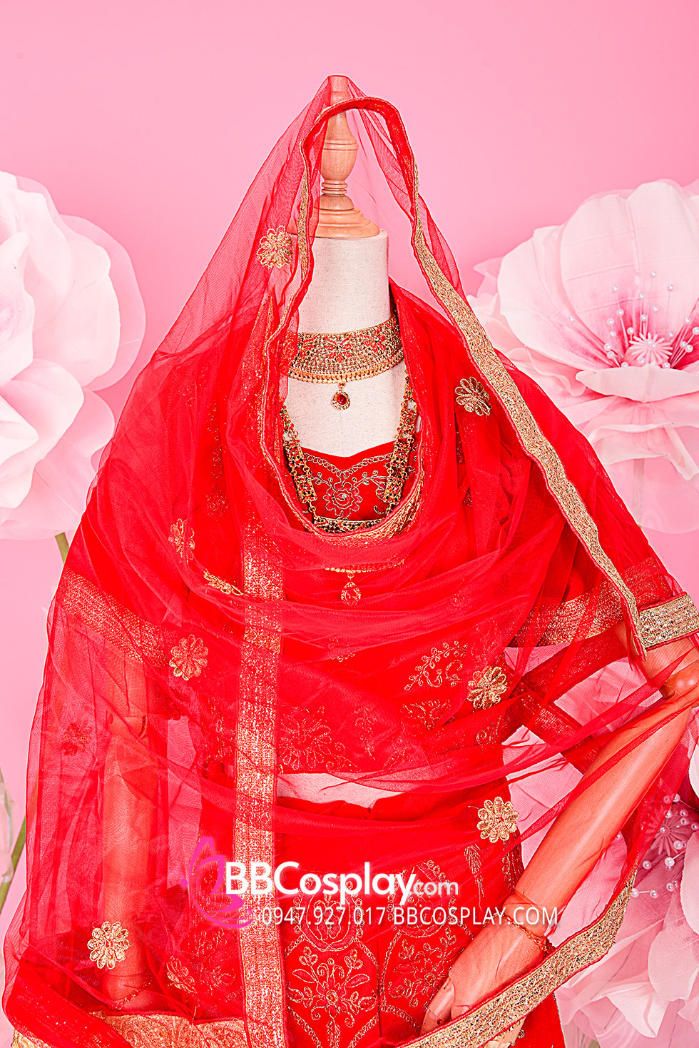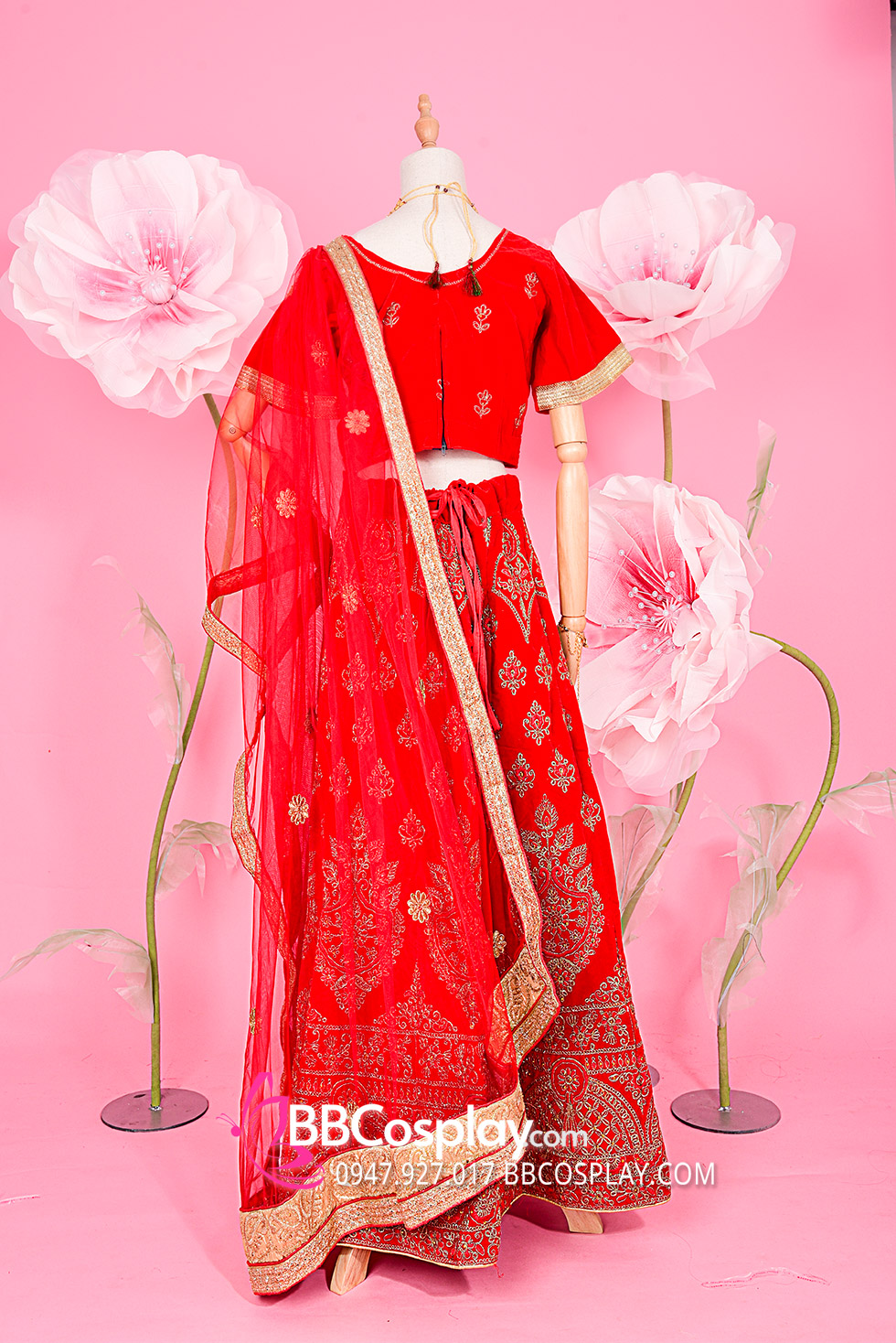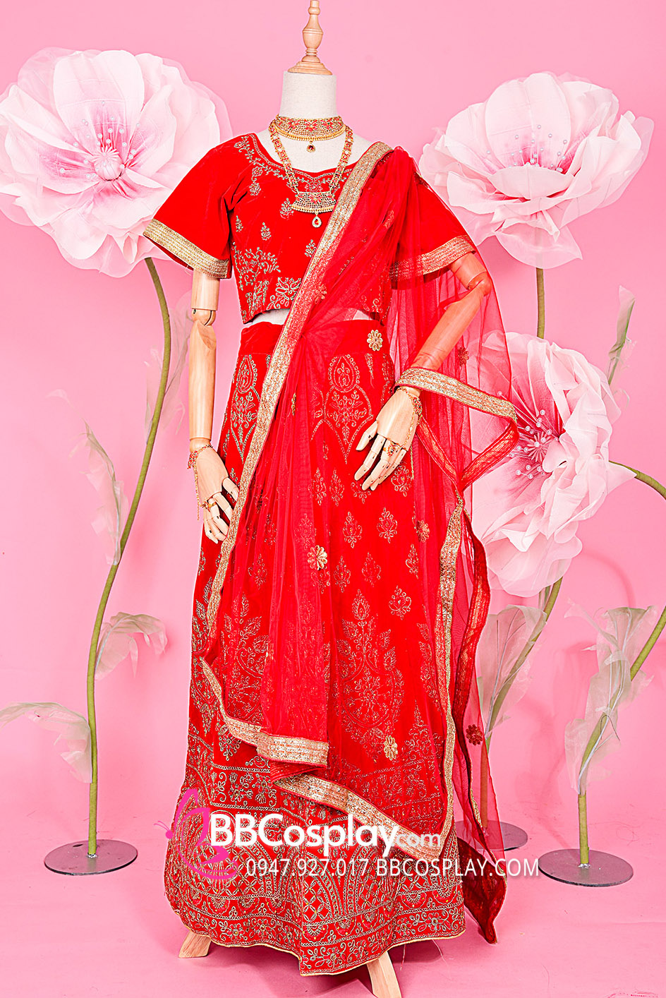 Trang Phục Lahanga Đỏ Ấn Độ Cho Cô Dâu