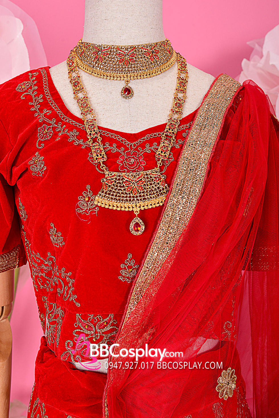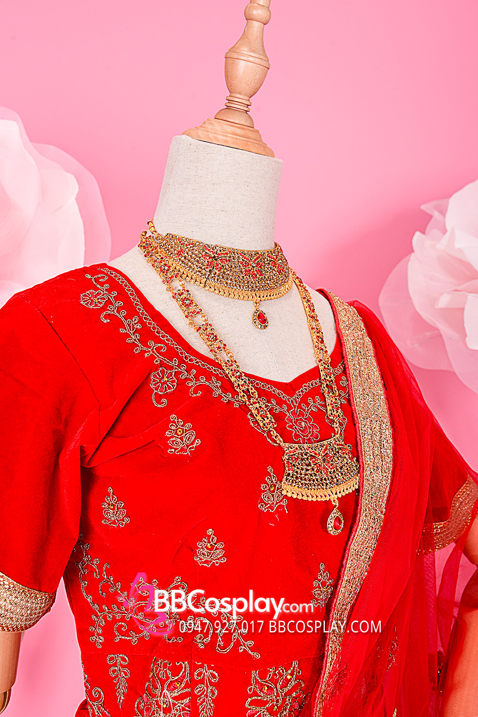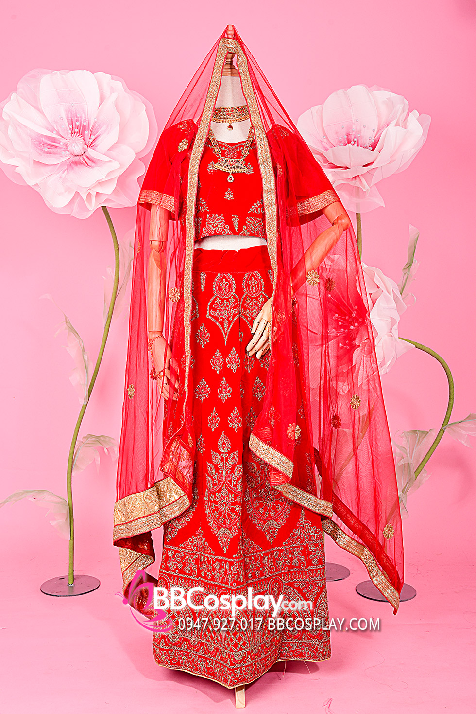 Trang Phục Lahanga Đỏ Ấn Độ Cho Cô Dâu
