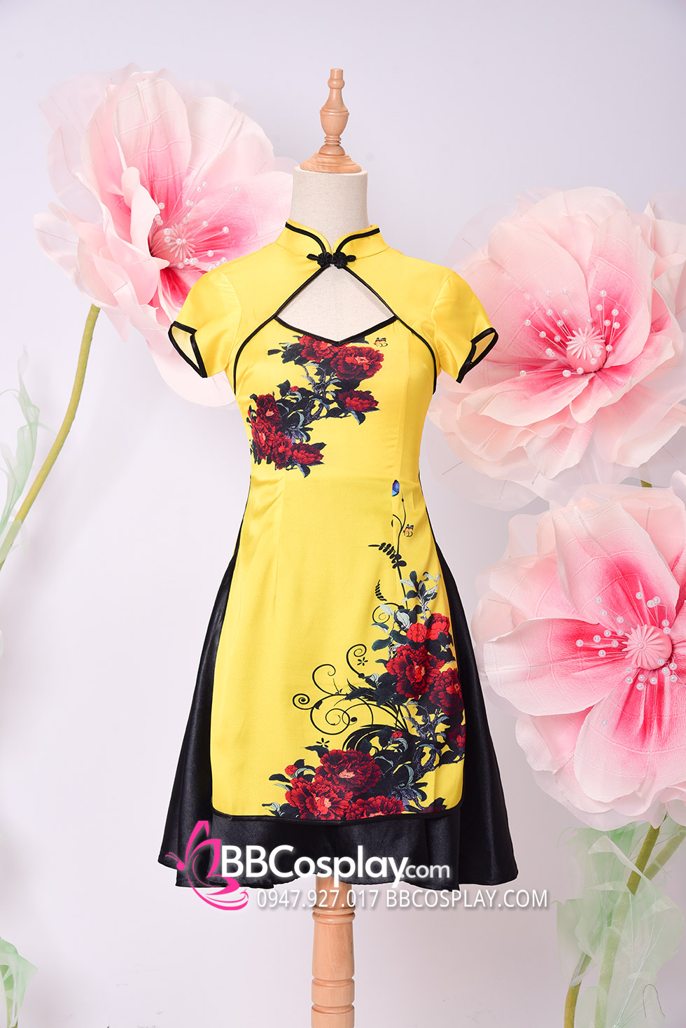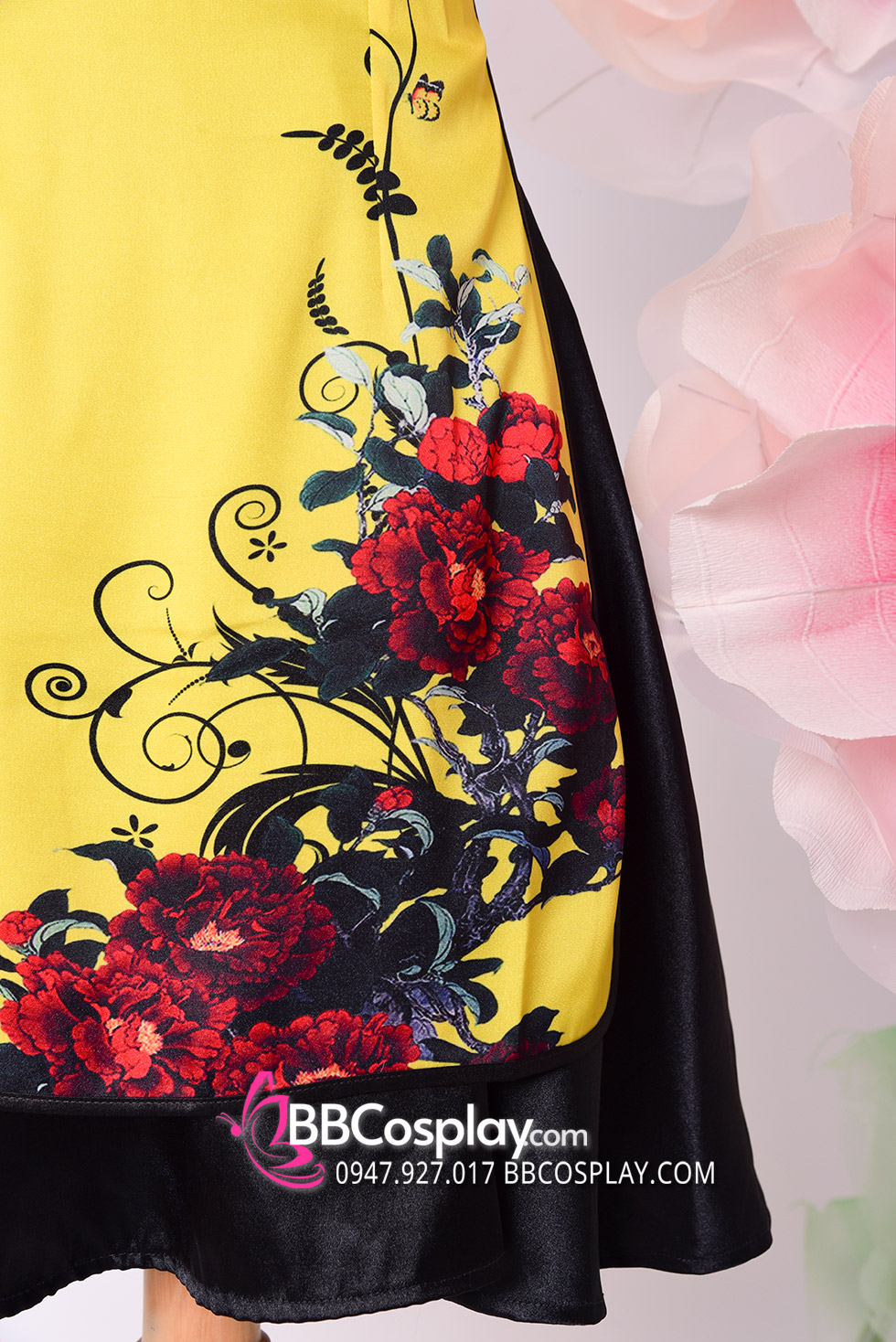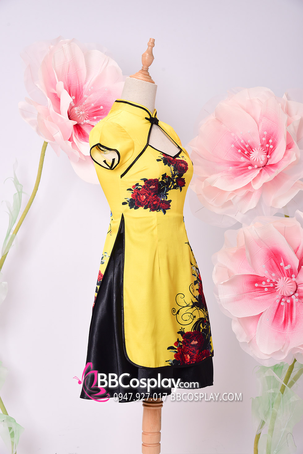 Qiloli Vàng - Sườn Xám Vàng Váy Đen