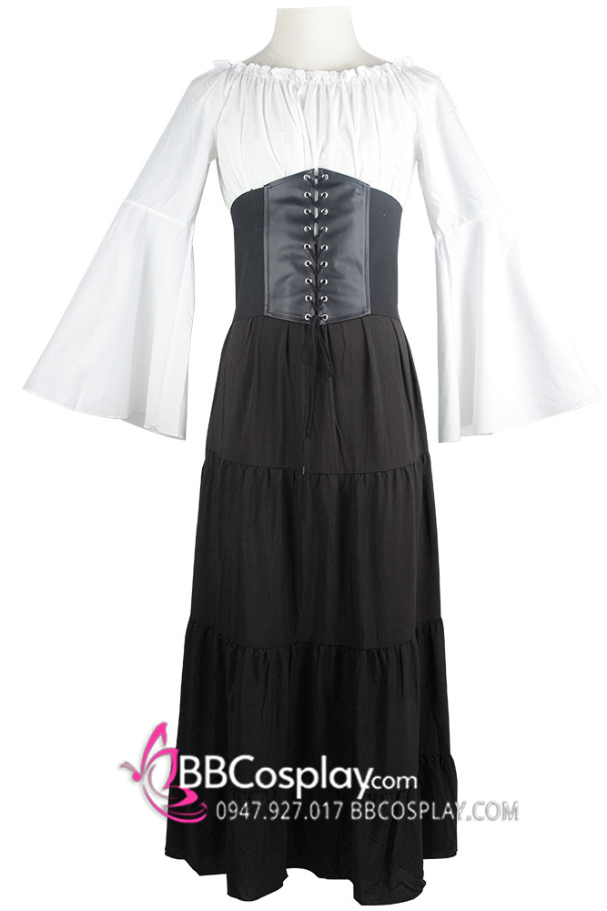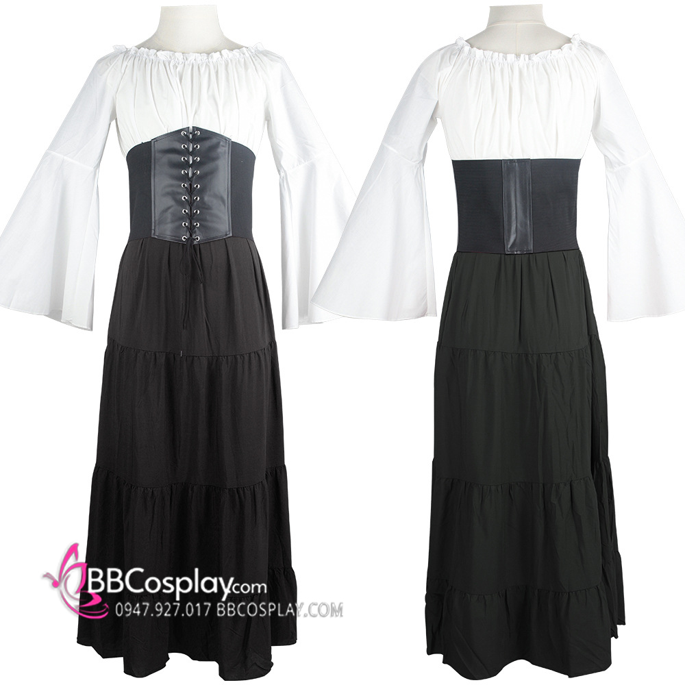 Đồ Nàng Hầu Maid Đen Tạp Dề Trắng Kèm Nhiều Nơ
