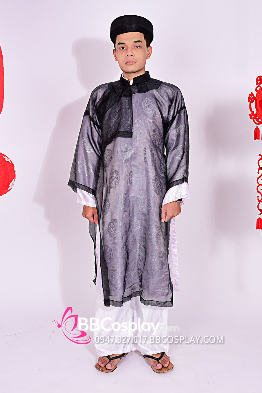 Trang phục hóa trang ông đồ tại BBCosplay được may từ vải gấm, voan; form đồ chuẩn, phù hợp với nhiều dáng người. Trang phục phù hợp với hóa trang, chụp ảnh, đóng kịch, múa,... Trang phục ông đồ bao gồm áo gấm, áo voan, quần, khăn đóng và có hỗ trợ thuê thuê lẻ và theo set tùy vào nhu cầu khách hàng.