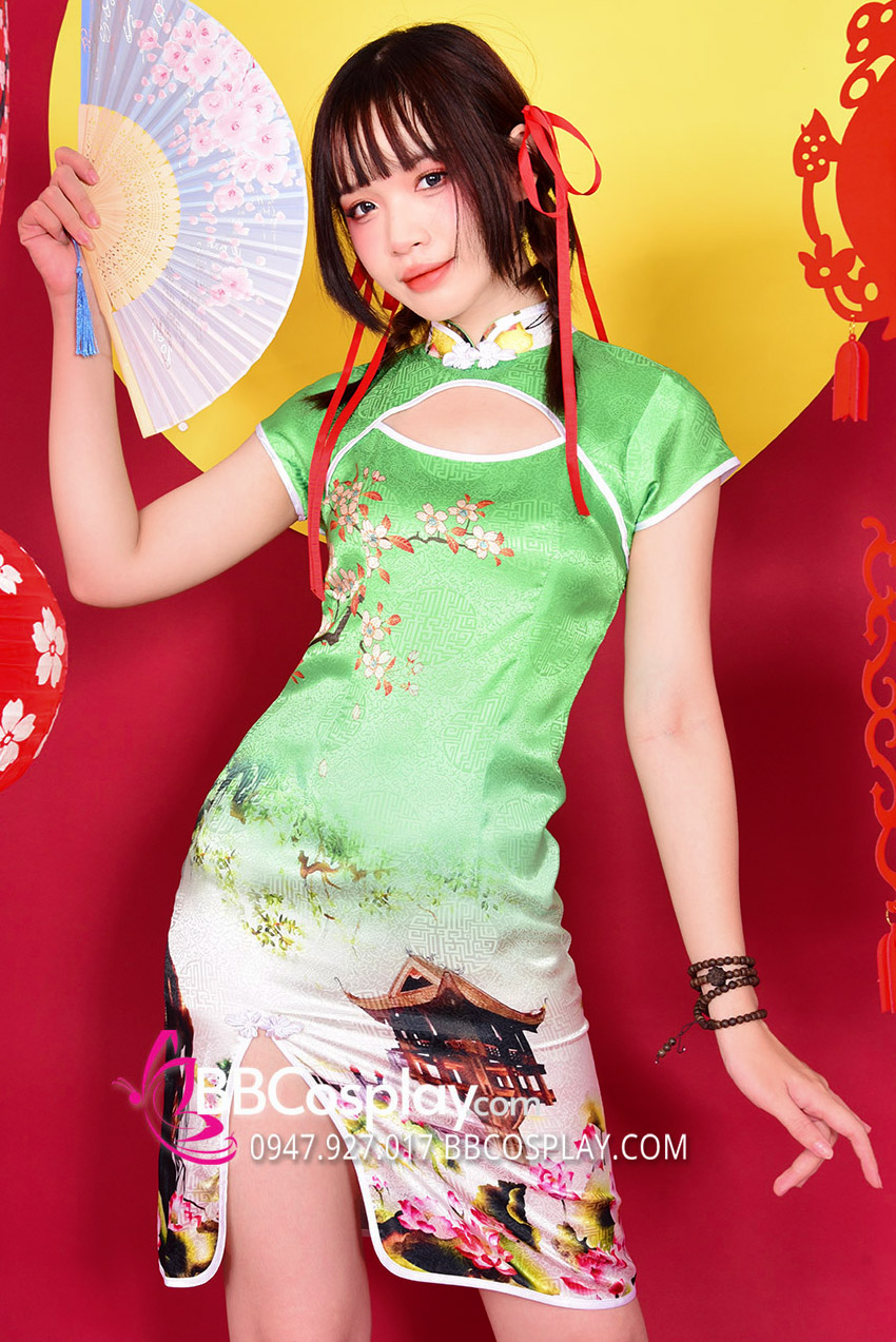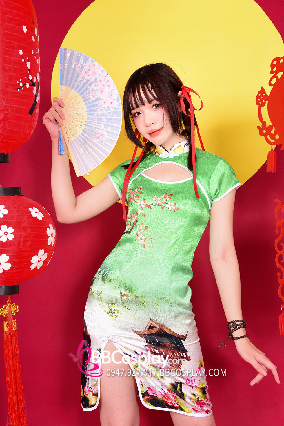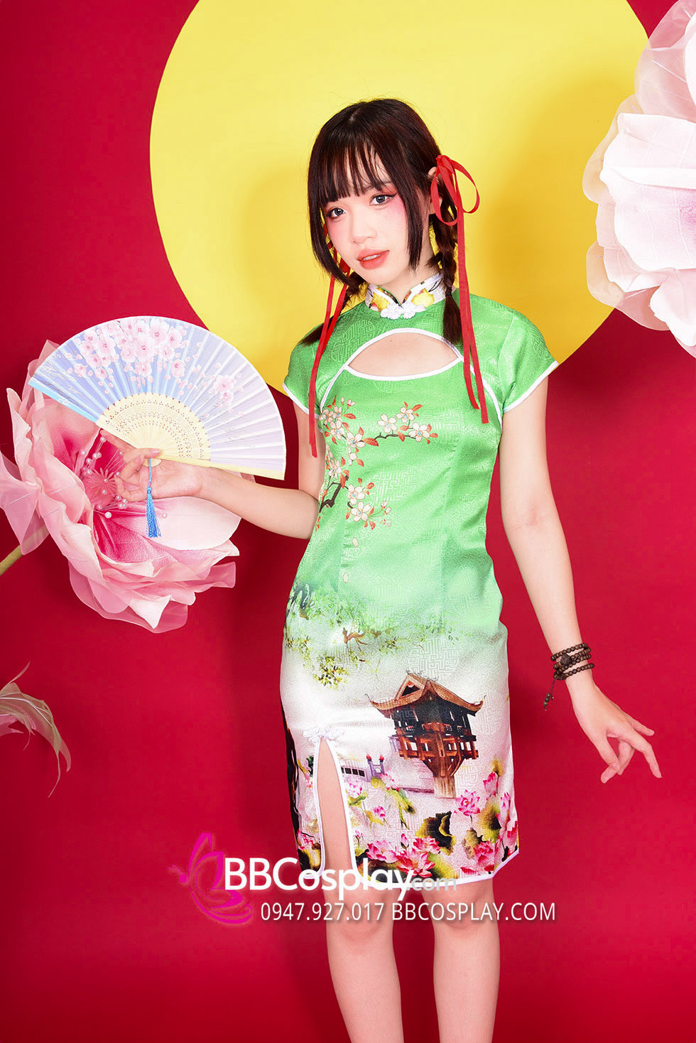 Xường Xám Độc Bản Xanh Mint Shop In Và May