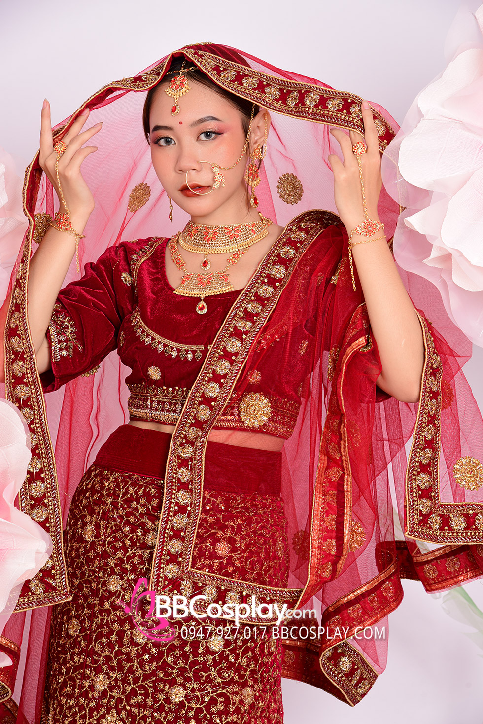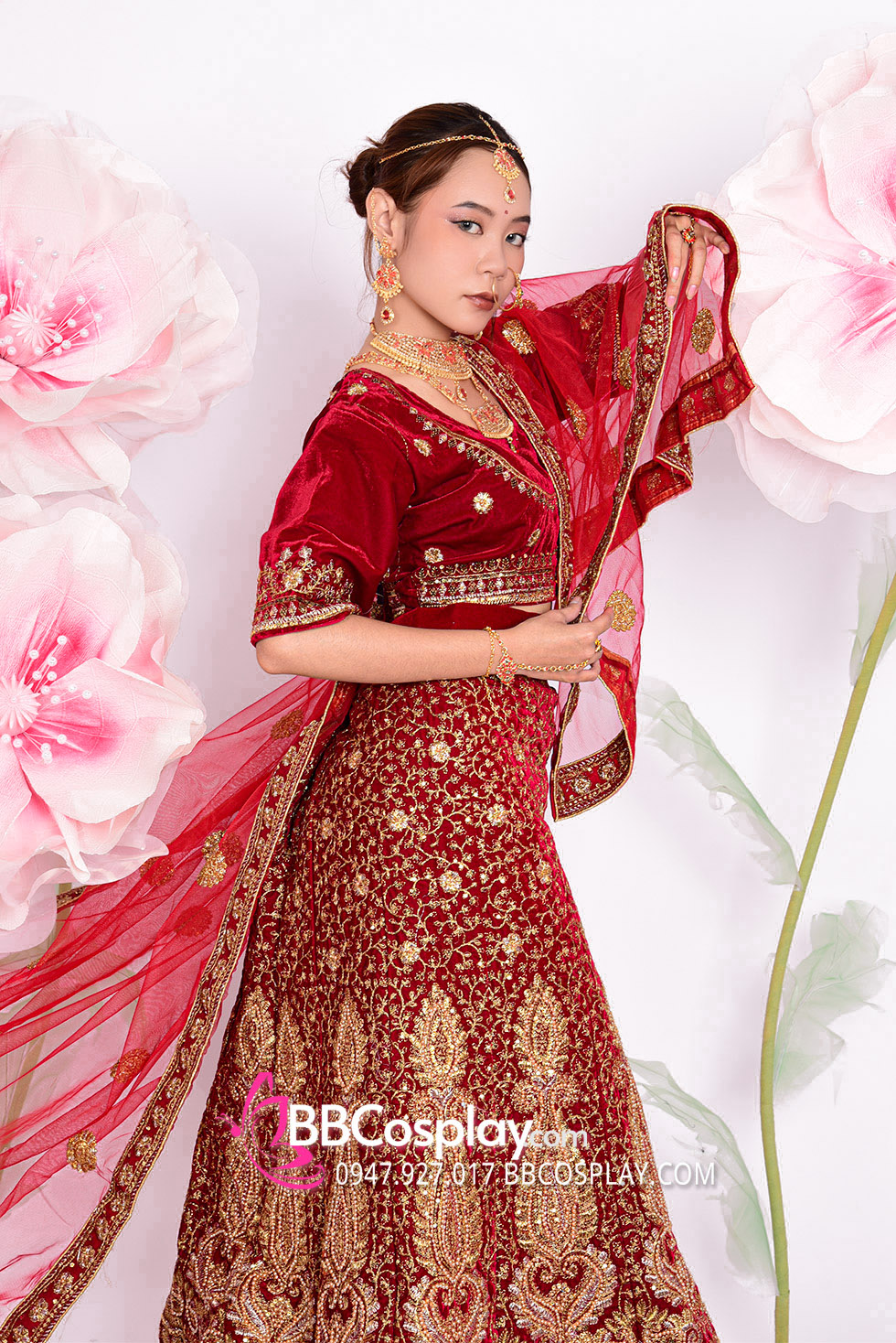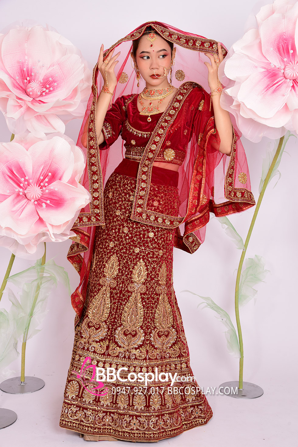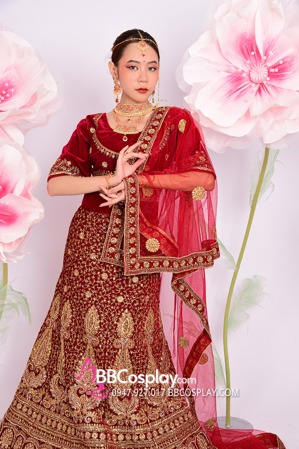 Trang Phục Lehanga Đỏ Gạch Cháy