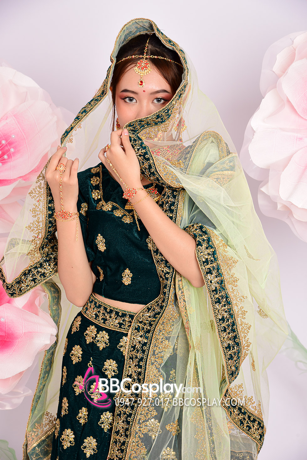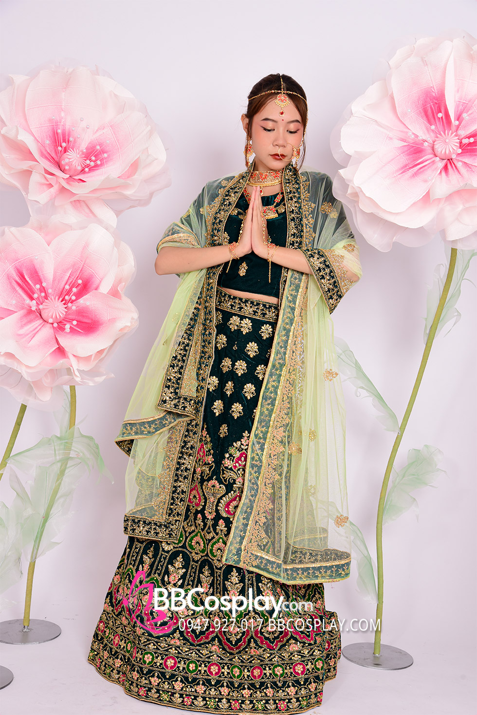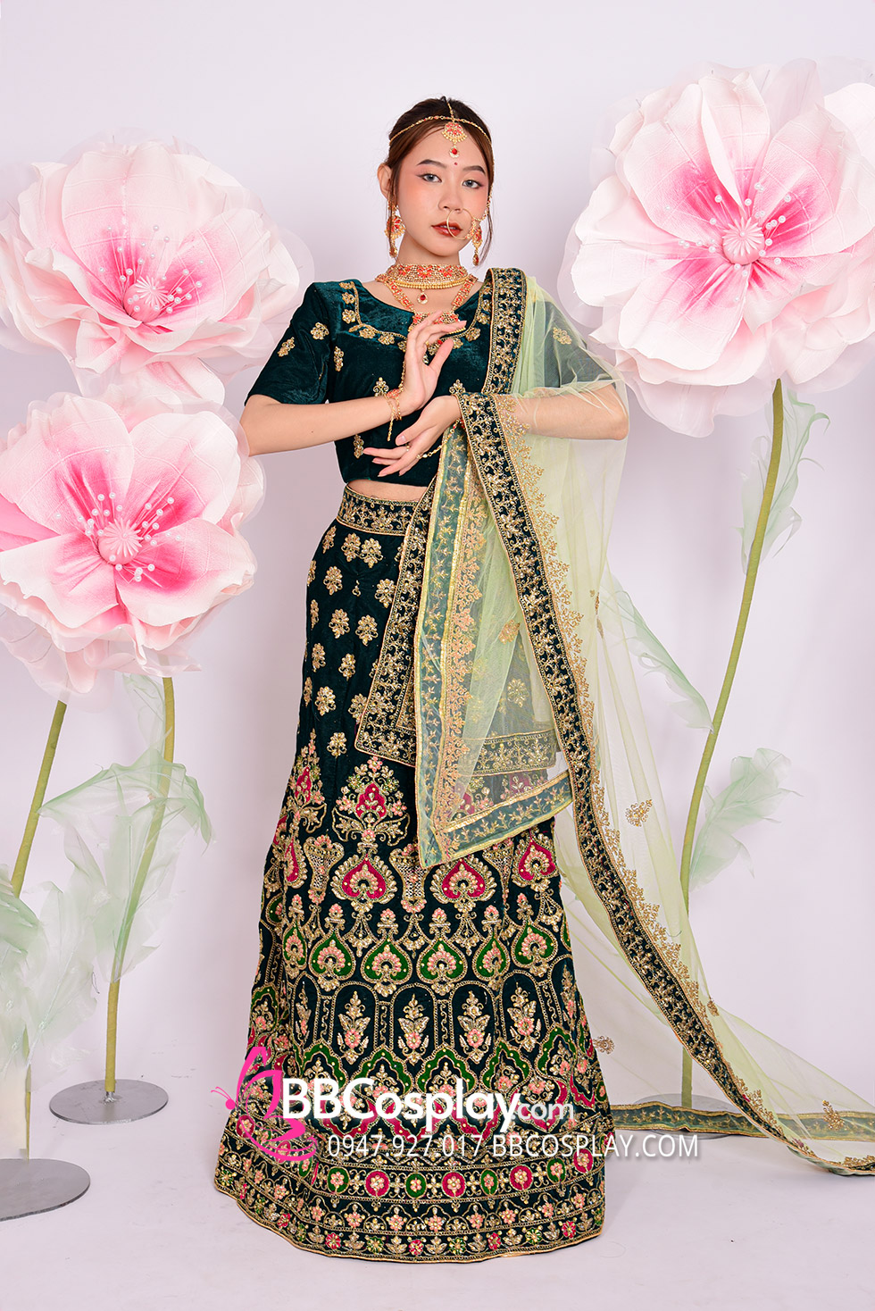 Trang Phục Lehanga Xanh Vert