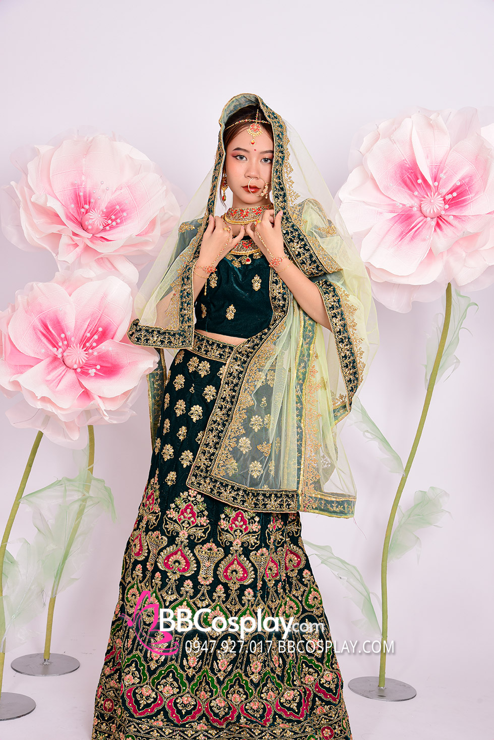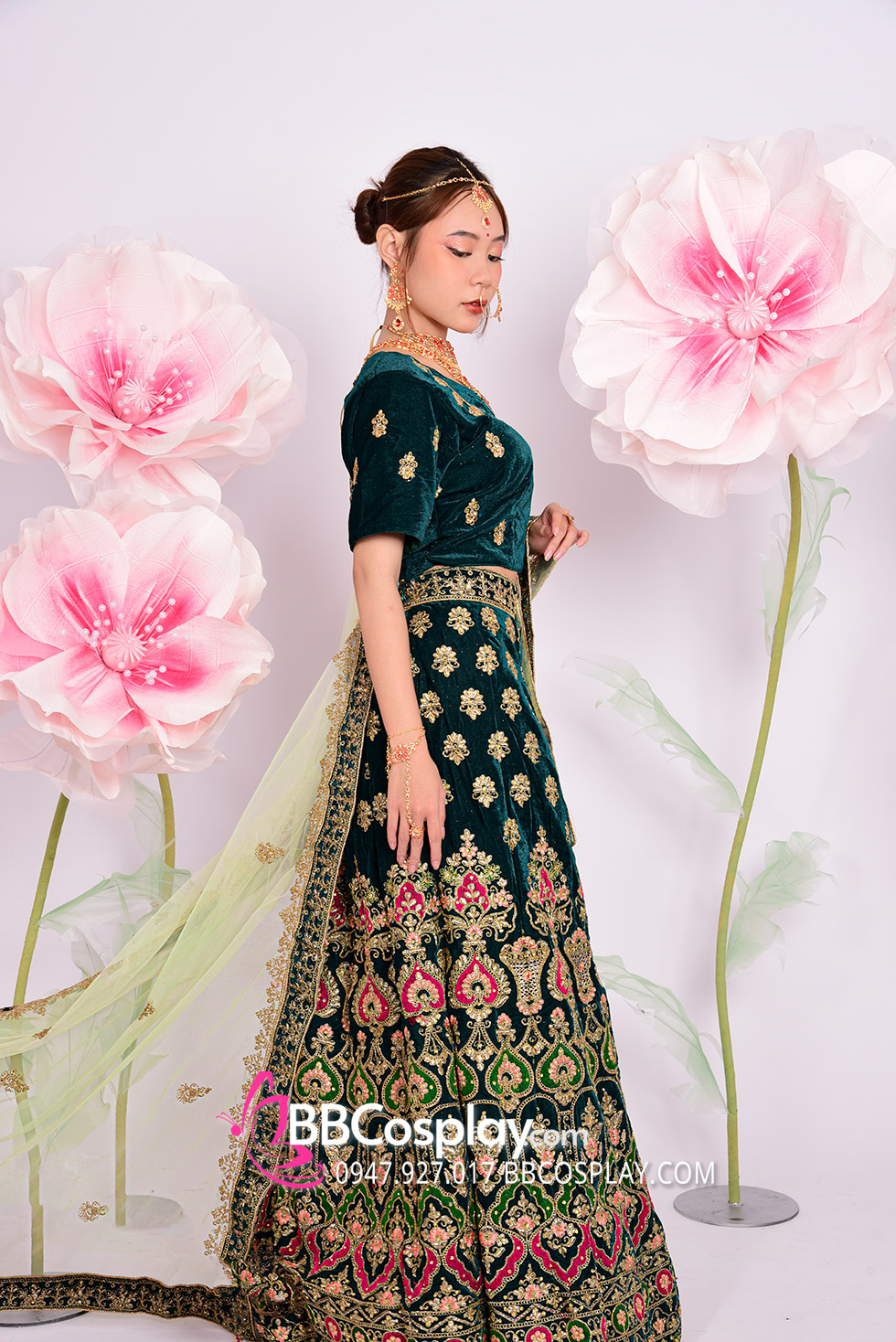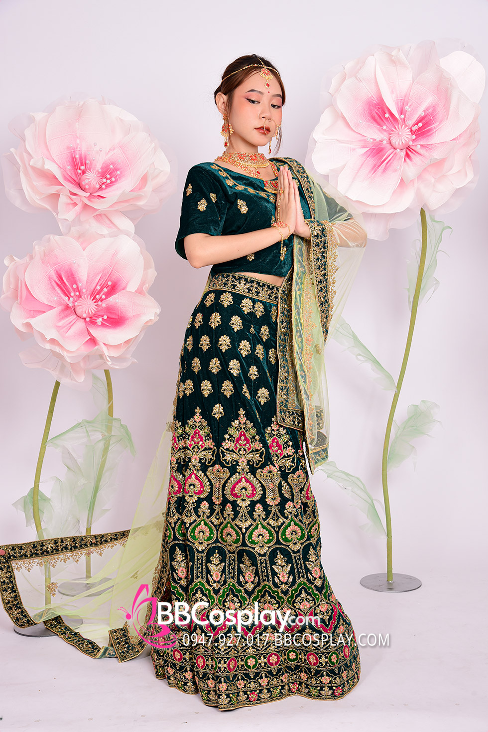 Trang Phục Lehanga Xanh Vert