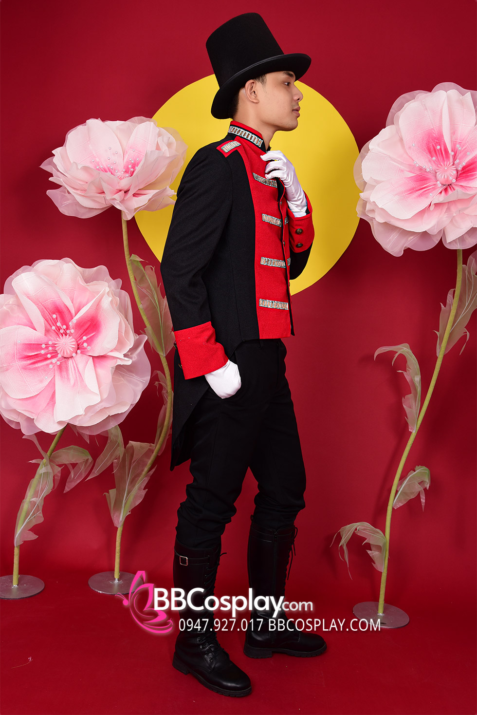 Trang Phục Nàng Hầu Cổ Lá Sen Kèm Tạp Dề Caro - Màu Đỏ
