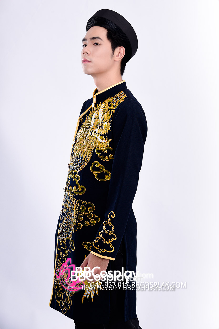Áo Dài Nam Đen Vẽ Rồng Vàng