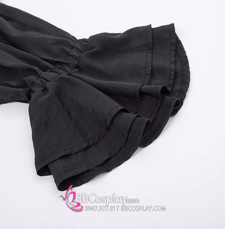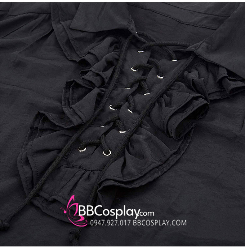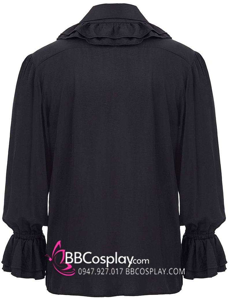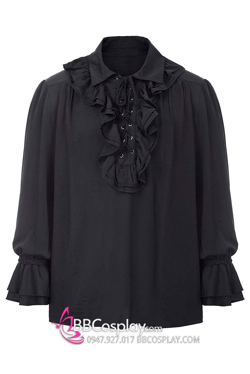 Áo Sơ Mi Đen Nam Tước Cổ Bèo Quý Tộc Cổ Điển
