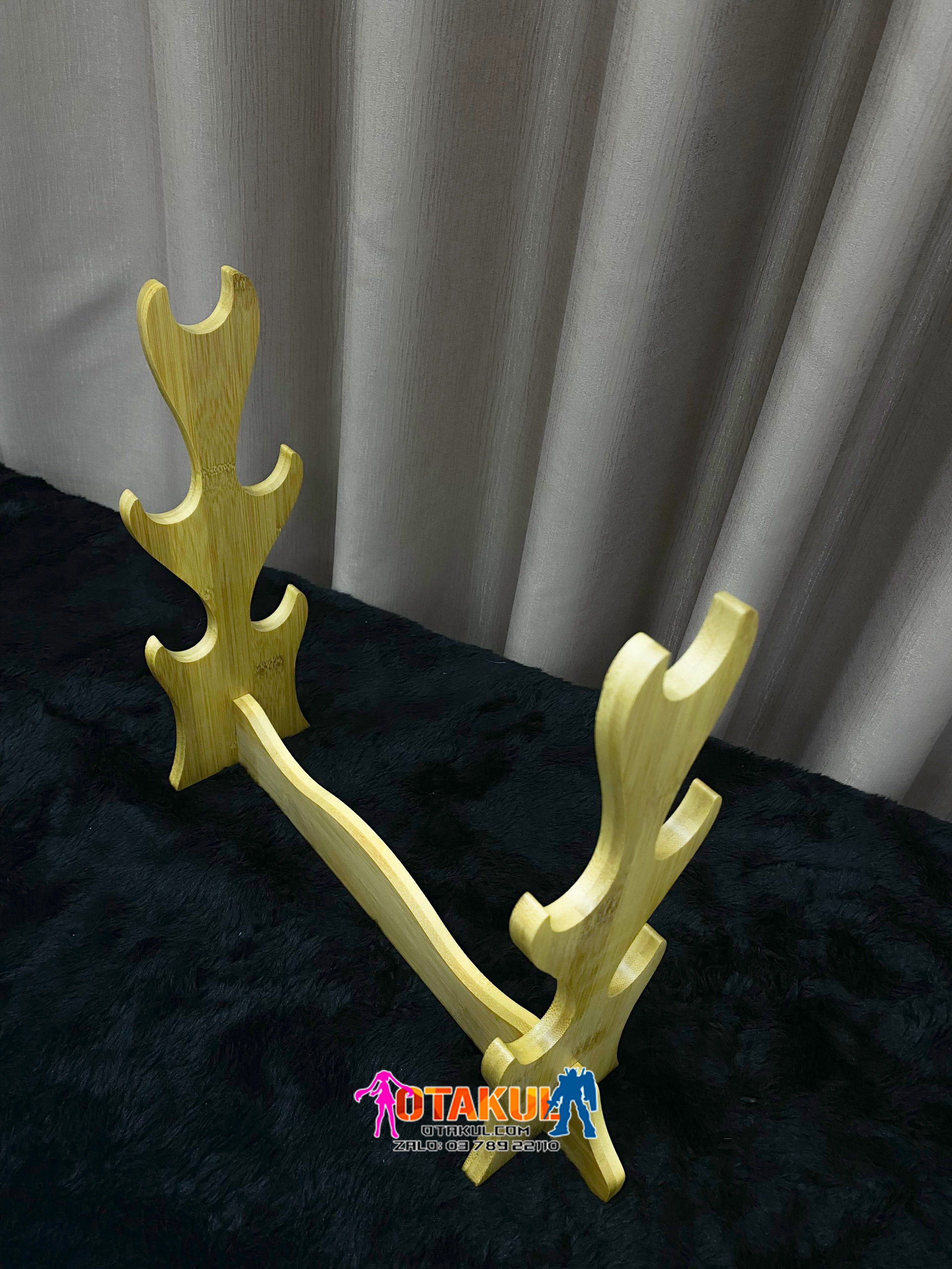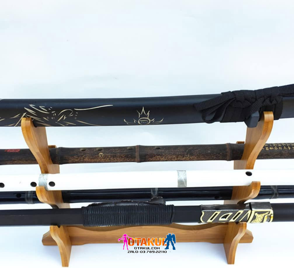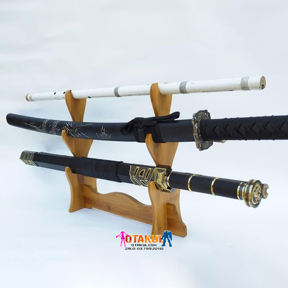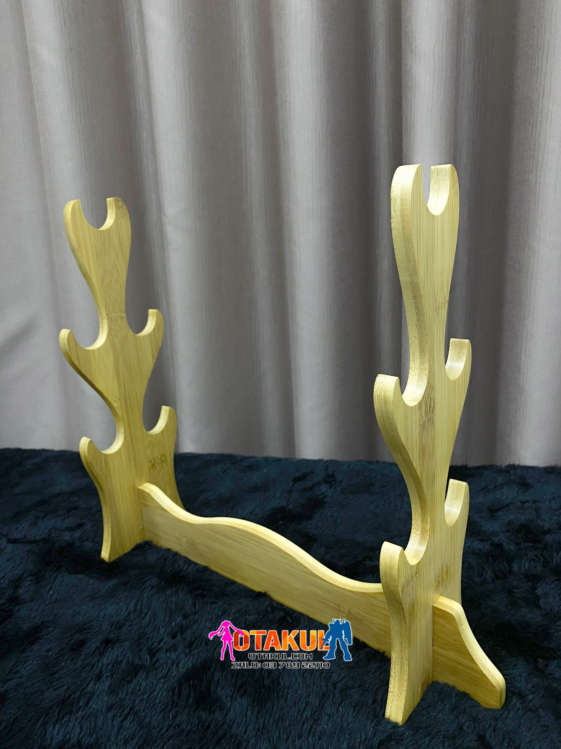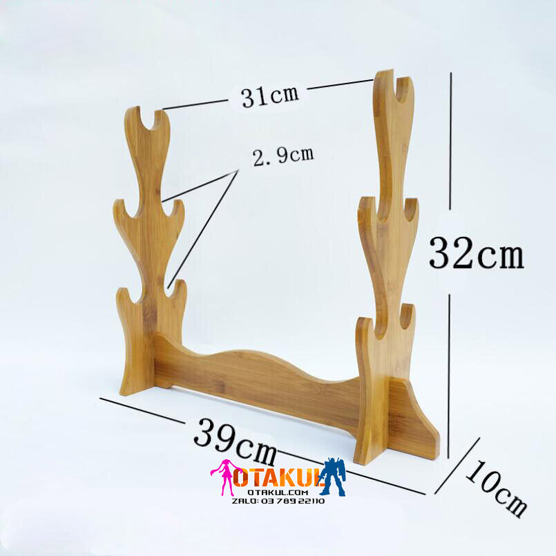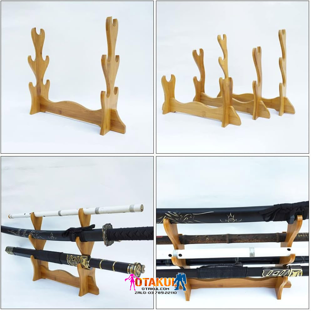 Giá đỡ kiếm Nhật là phụ kiện trưng bày không thể thiếu của các tín đồ sưu tầm kiếm. Giá đỡ phủ lớp sơn PU bóng mờ giúp tạo điểm nhấn và góp phần tôn vinh những thanh kiếm mà bạn đang sở hữu. Ngoài ra lớp sơn này còn giúp chống mối mọt, tăng tuổi thọ của gỗ.