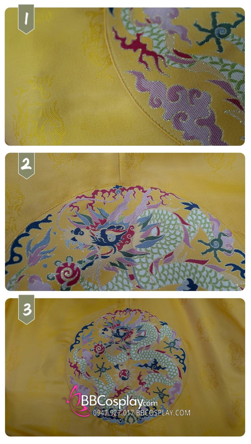 Thành phần: áo gấm thêu + áo lót + thắt lưng kim loại