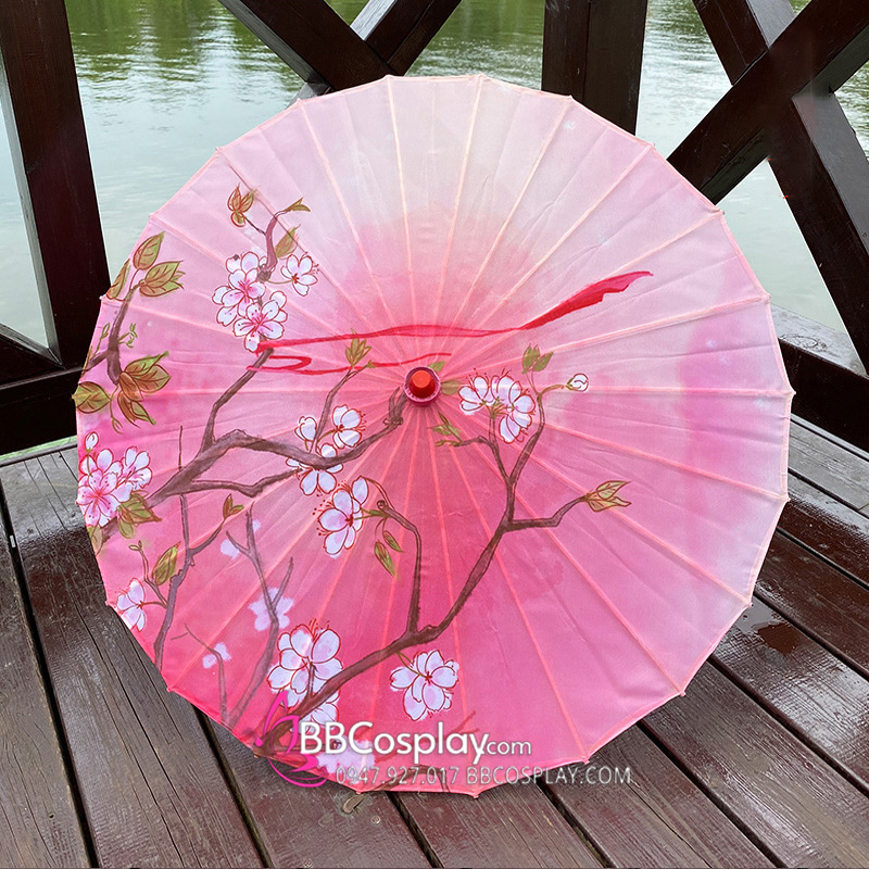 Dù Vải Hồng Nhánh Hoa Mơ Vướng Lụa Hồng Nương