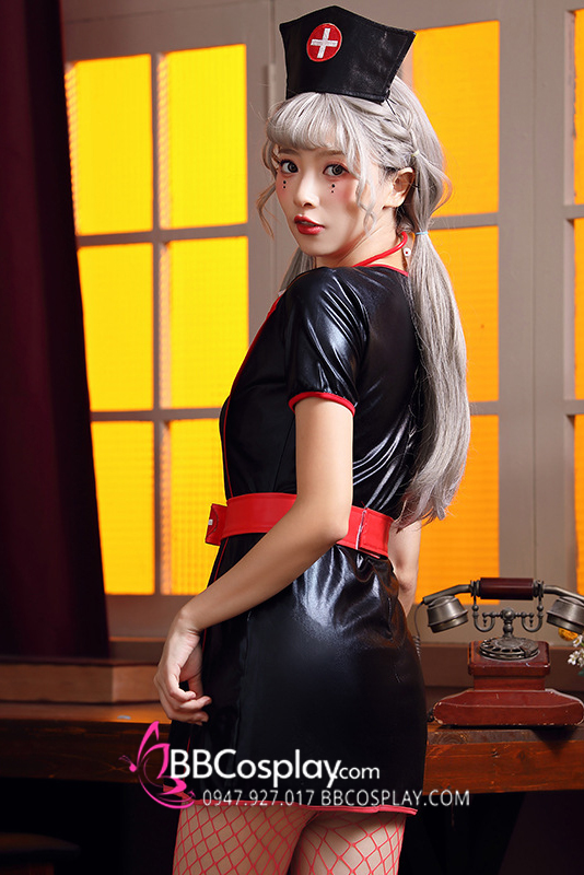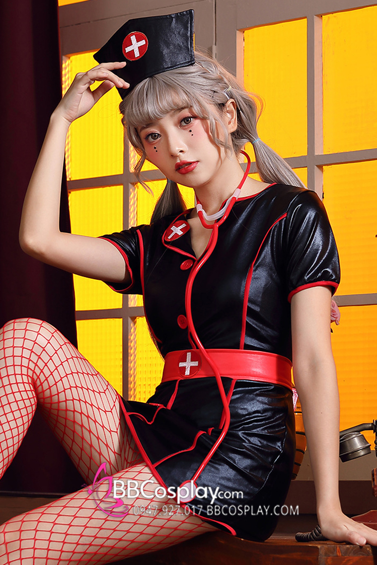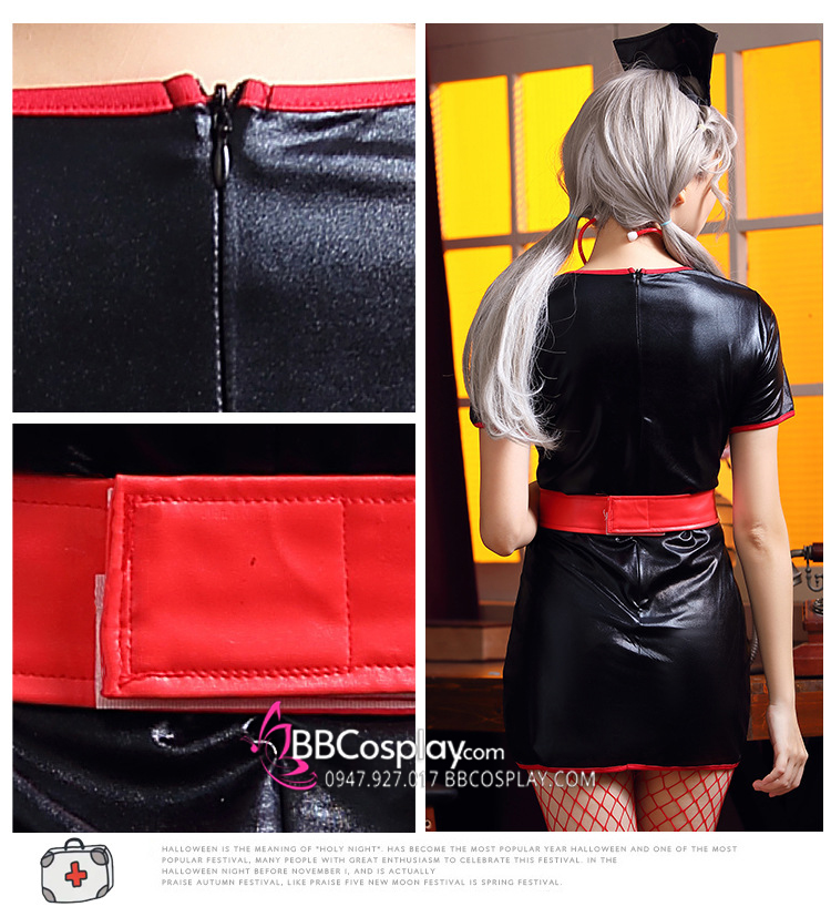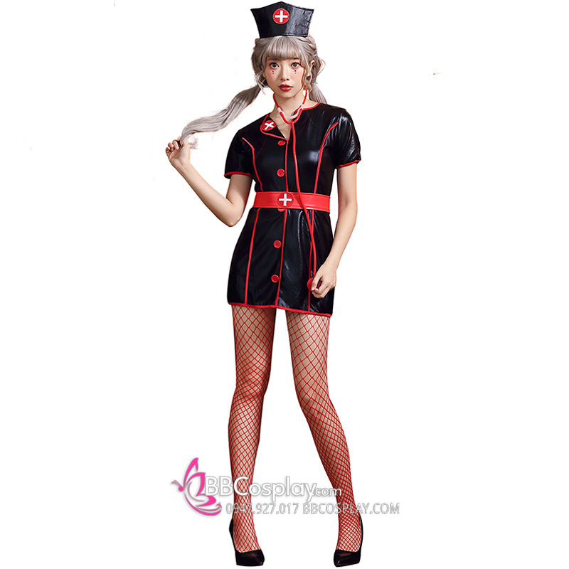 Váy Hoá Trang Nhân Vật Y Tá Halloween Đen Viền Đỏ