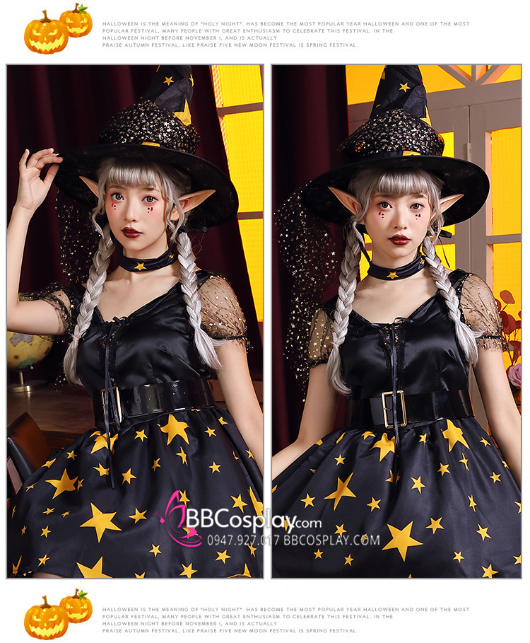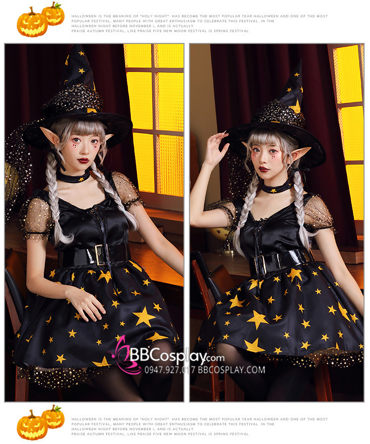 Các lễ hội hóa trang như Halloween là dịp được nhiều người đón chờ vì đây là mùa hóa trang vũ hội vui nhất trong năm. Người tham gia có thể trở thành những nhân vật mình yêu thích. Nếu bạn đang tìm kiếm một sự hóa thân hoàn hảo dành cho dịp Halloween thì BBCosplay có thể là một gợi ý tuyệt vời vì chúng tôi có bán và cho thuê Trang Phục Nữ Phù Thuỷ Ngôi Sao. Ngoài ra chúng tôi còn có rất nhiều mẫu mã cho bạn lựa chọn.
