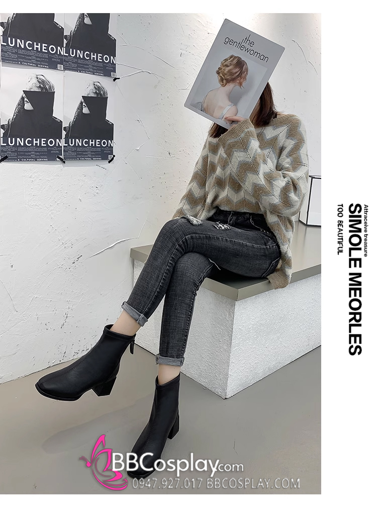 boot đen đế dày 5 phân