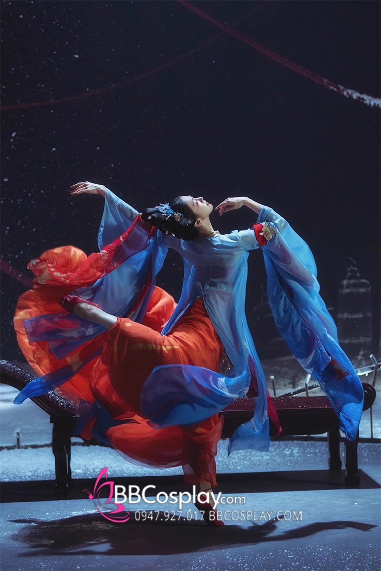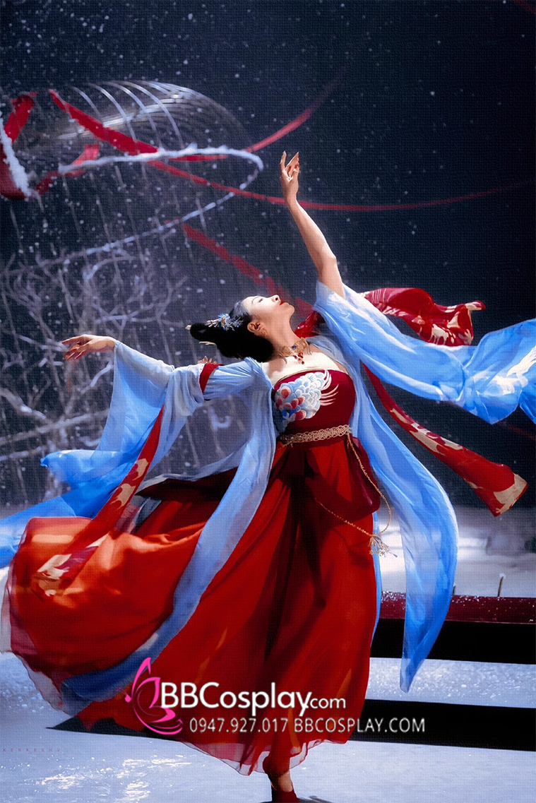 Hán Phục Băng Tư Mộc Tuyết sẽ đem lại sự thoải mái cho người mặc vì chất voan, lụa rất thoáng khí và mềm mại. Trang phục bao gồm áo, váy và dây; có nhiều size, phần dây lưng còn có thể tăng giảm tùy ý theo số đo của người mặc.