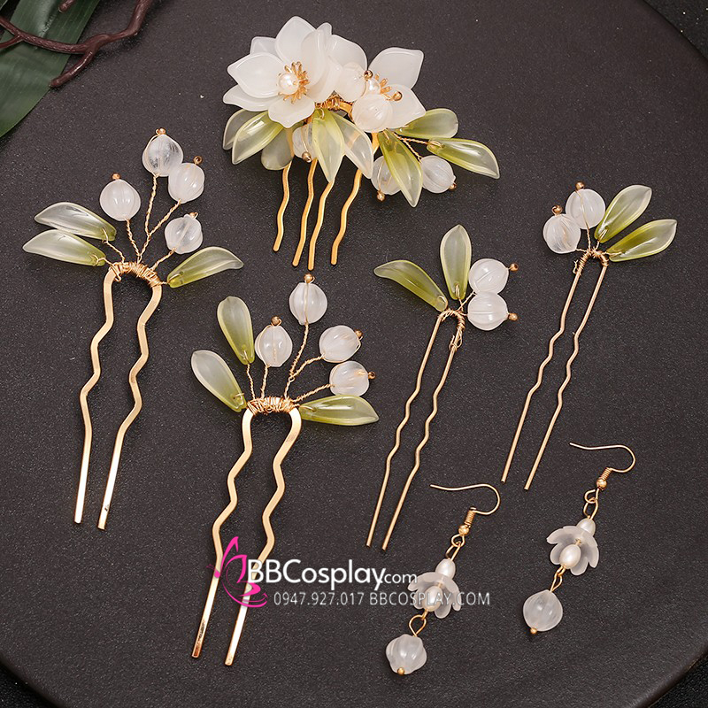 Bộ Trâm Cài 7 Món Đơn Giản Hoa Trà Trắng