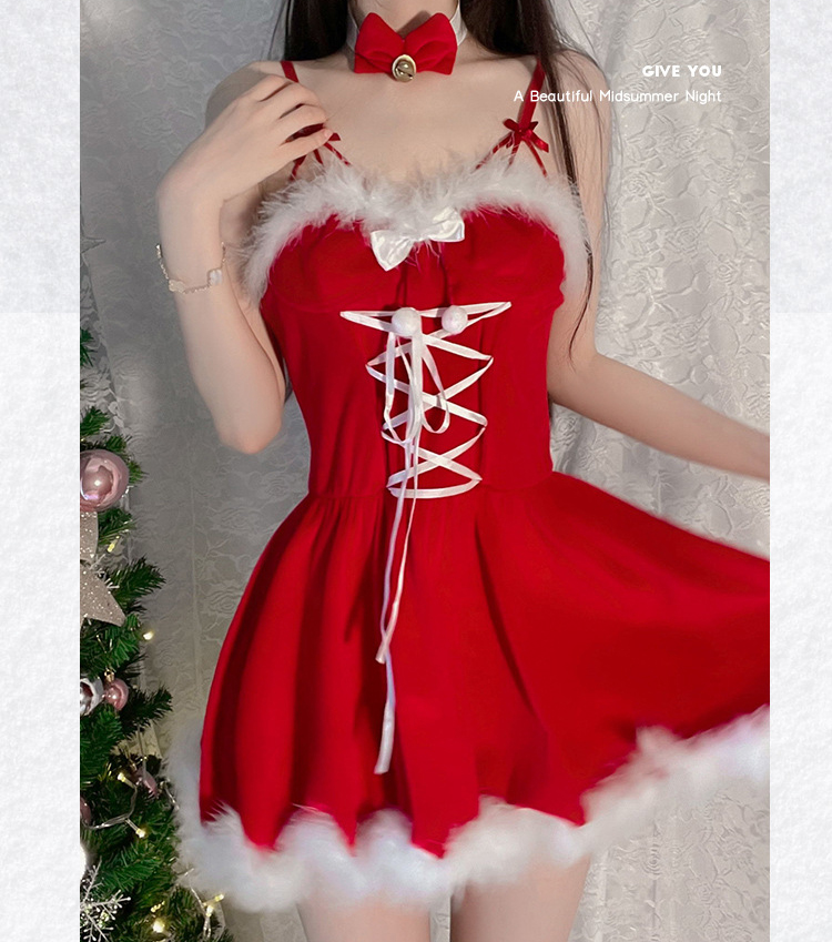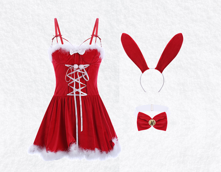 Đầm Noel Dáng Xoè Phối Lông Có Tai Thỏ Sexy Girl
