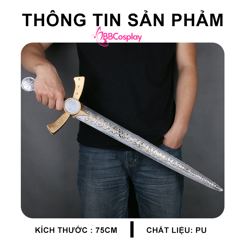 Kiếm foam sơn bạc. Kiếm được sơn bạc mờ, tạo cảm giác chắc tay khi cầm, và không bám dâu vân tay. Màu bạc cũng giúp sản phẩm trong sang trọng hơn, hoa văn trên thân kiếm nổi bật.