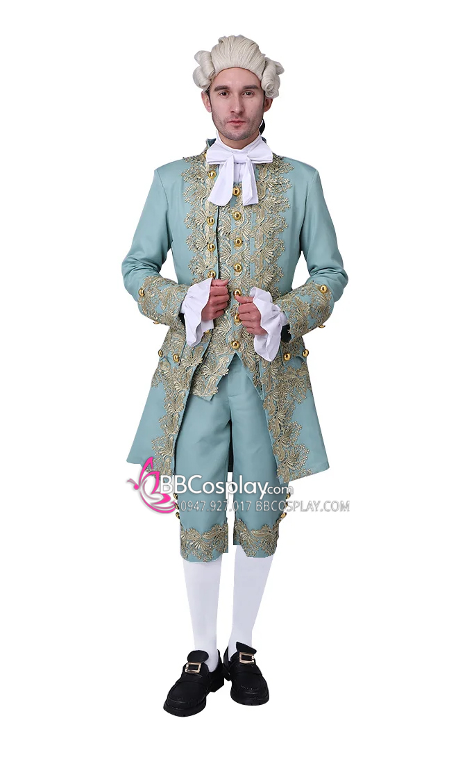 Trang Phục Cổ Điển Xanh Ngọc Rococo Aristocrat Thời Trung Cổ Marie Cho Quý Ông