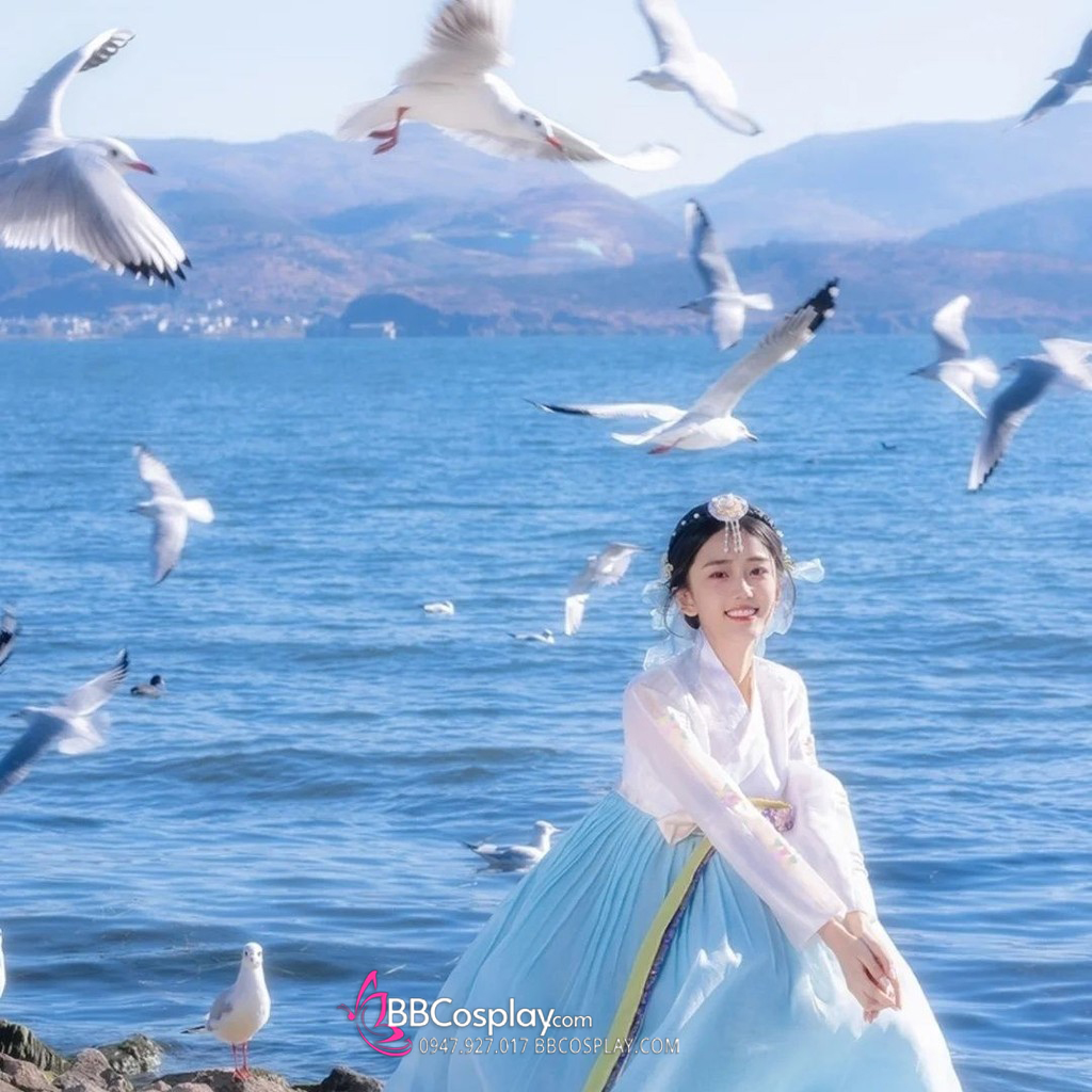 Cài Tóc Hanbok Hàn Quốc Xanh Hoa Trắng