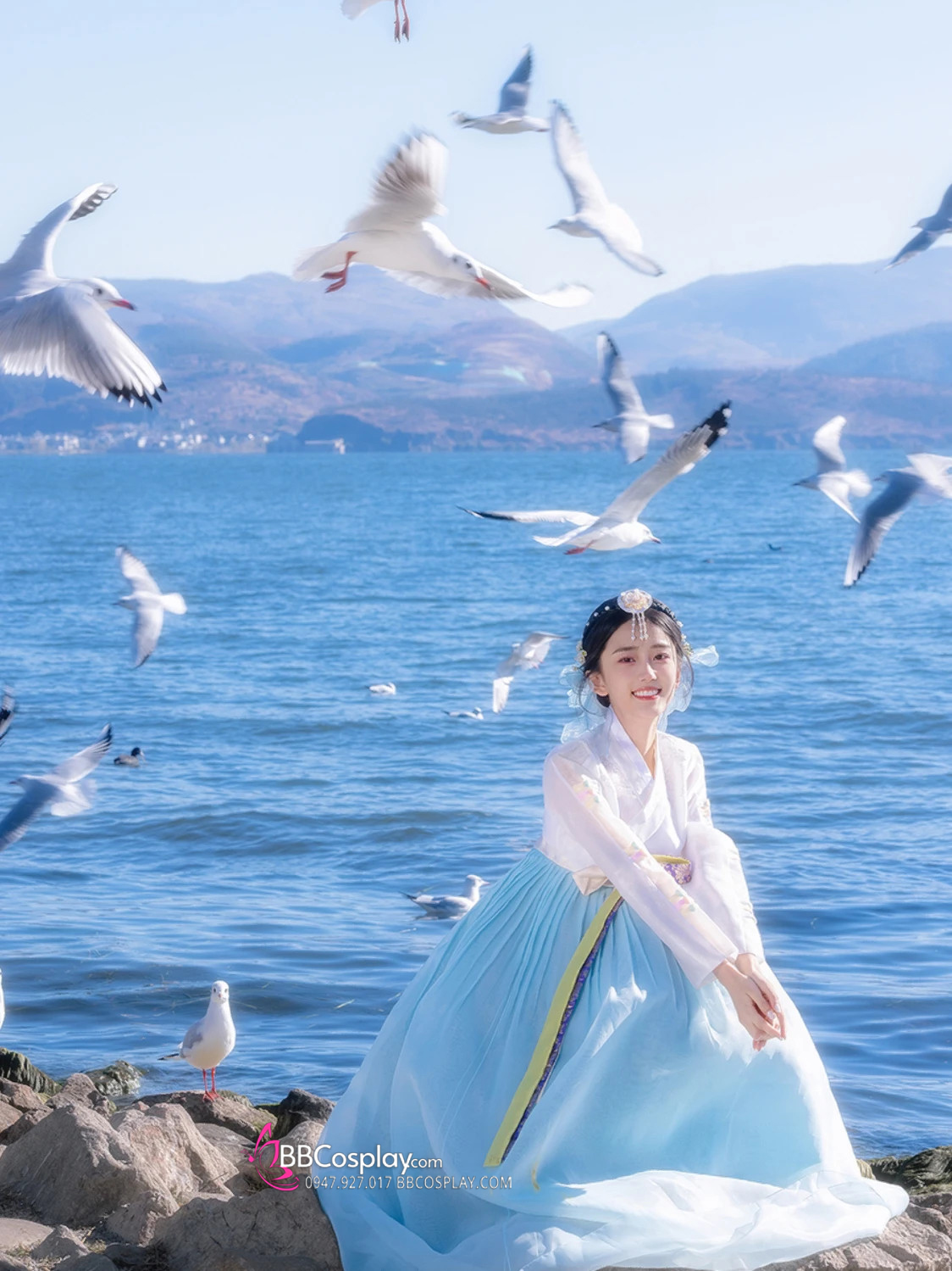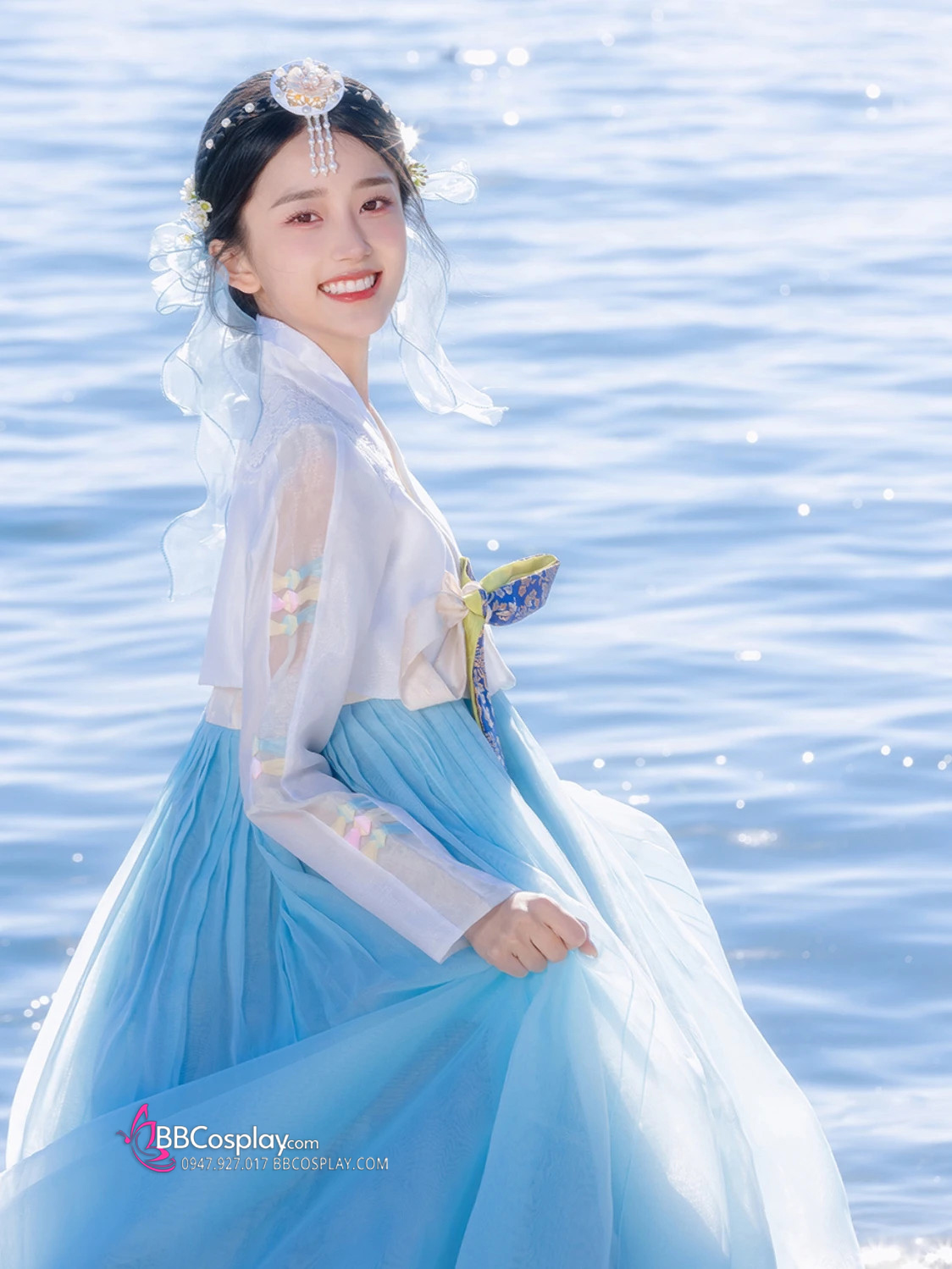 cài tóc hanbok hoa trắng ( thuê chung với trang phục)