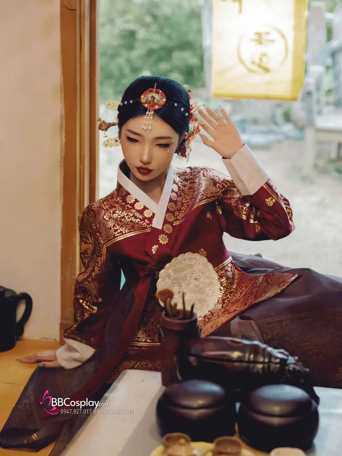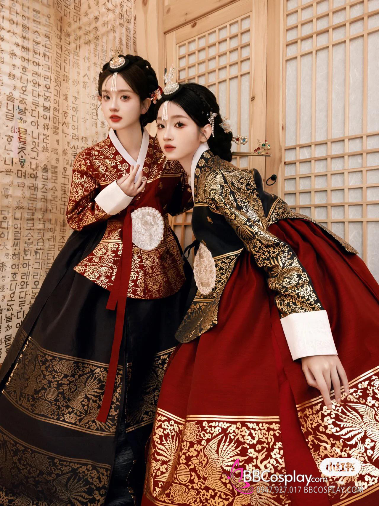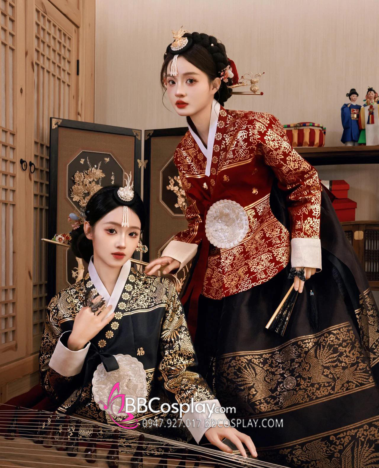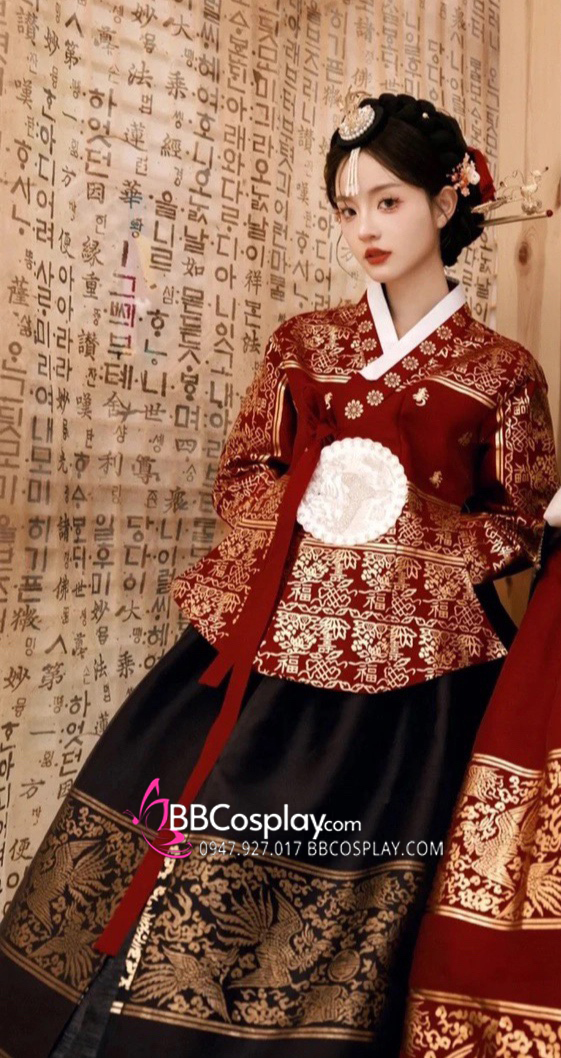 Hanbok Hoàng Cung Hàn Quốc - Áo Đỏ Váy Đen